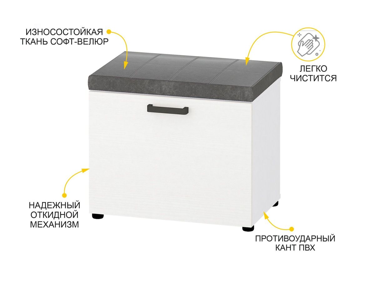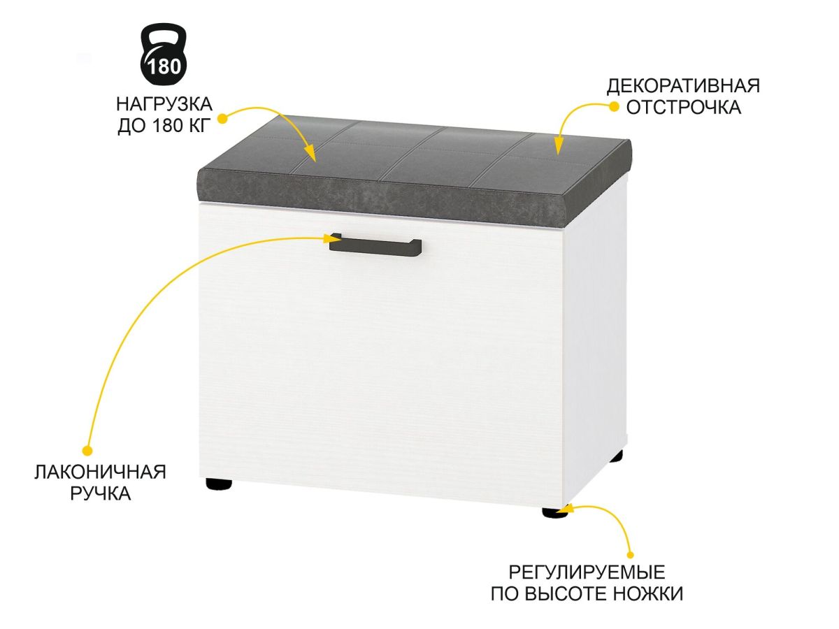 - Белоснежный цвет в сочетании с серой обивкой сиденья визуально расширяет пространство, делает интерьер Вашей прихожей стильным.