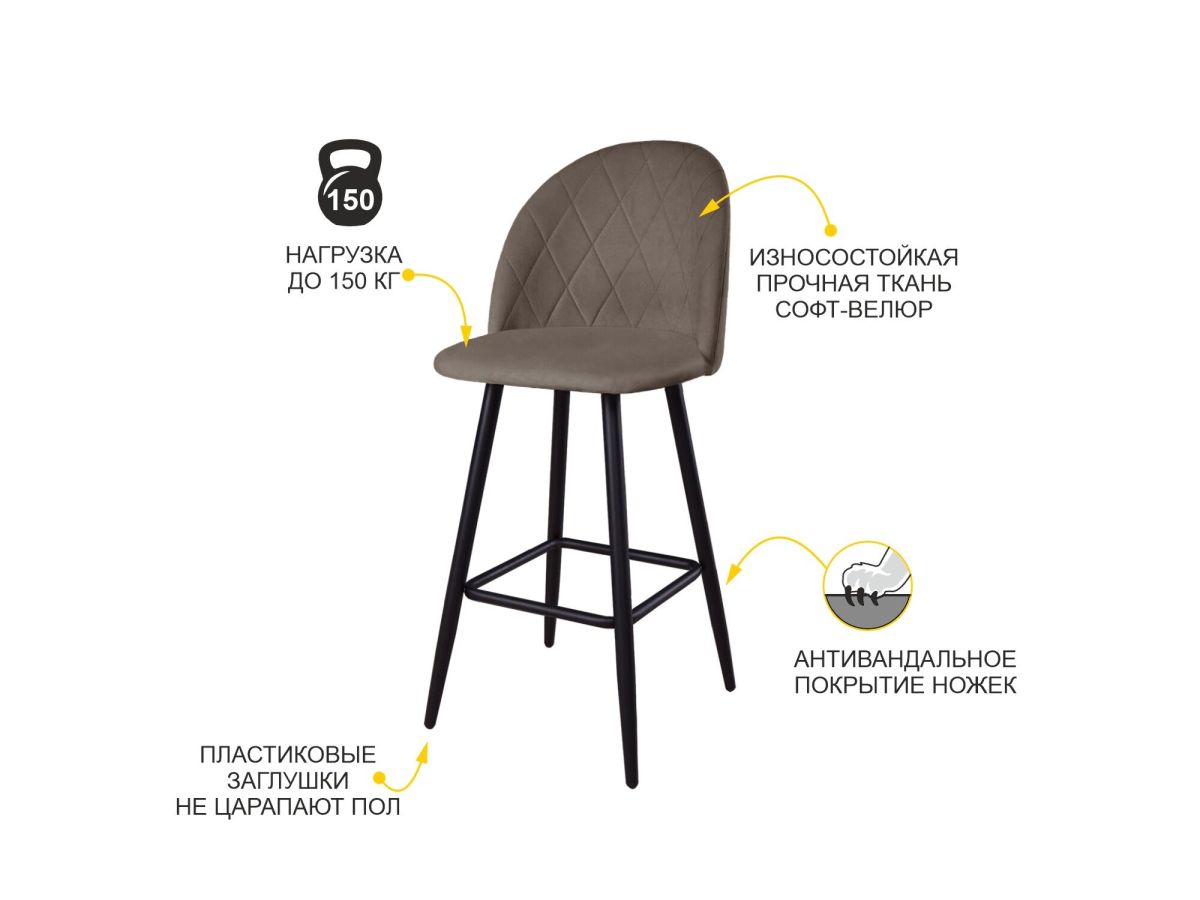 Барный стул Велюр Лира 13 (02) Коричневый-Черный