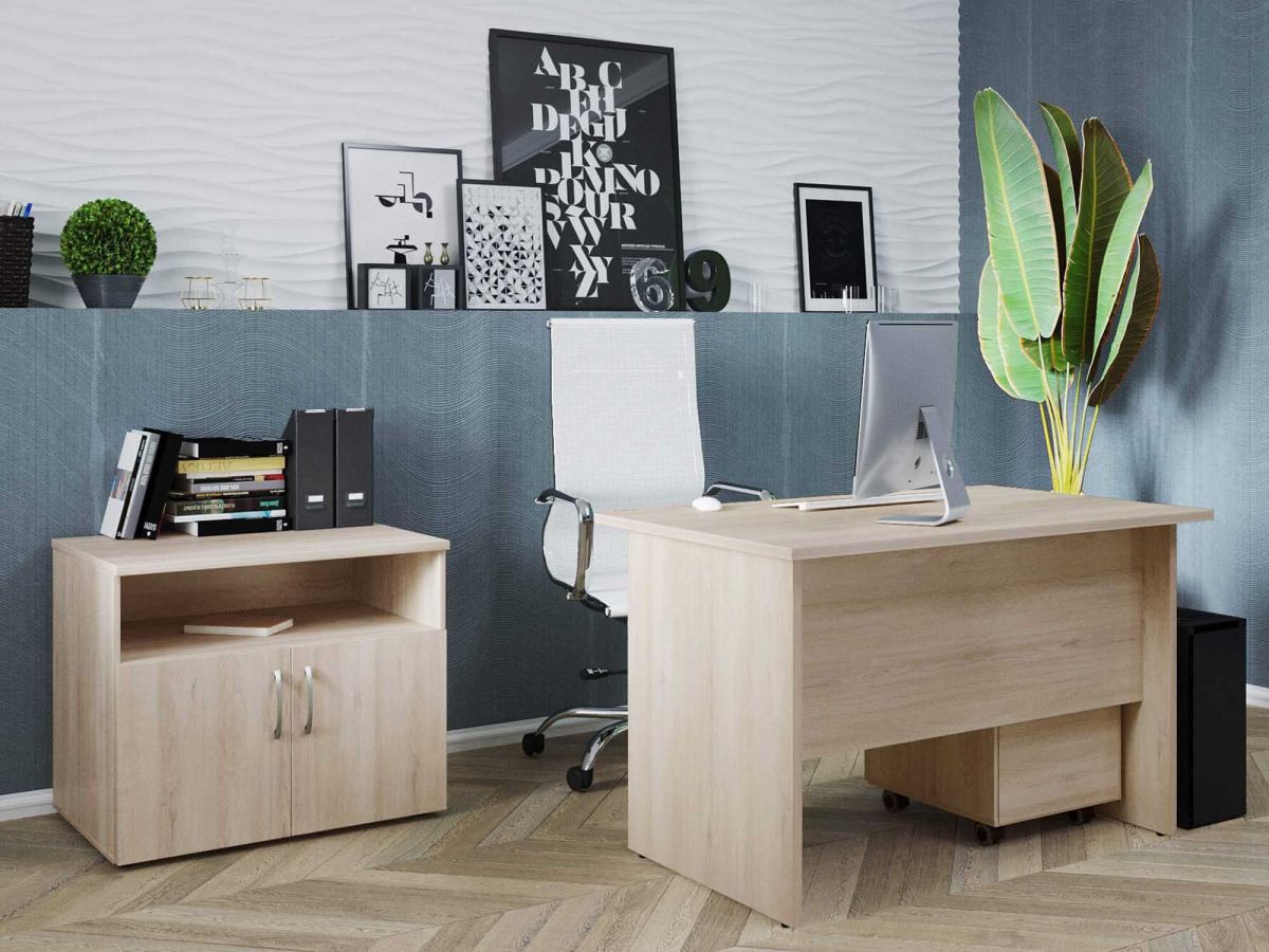Набор мебели «Альфа 64 583» позволит организовать комфортное рабочее место. Набор мебели для офиса состоит из рабочего стола, выкатной тумбы с замком и тумбы под оргтехнику. «Альфа 64 583» является частью модульной коллекции «Альфа 64», а это значит, что Вы можете купить этот набор в представленном виде или дополнить состав набора с учетом своих пожеланий.