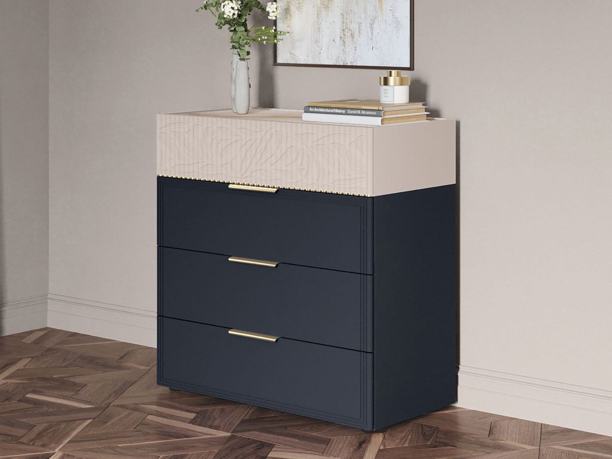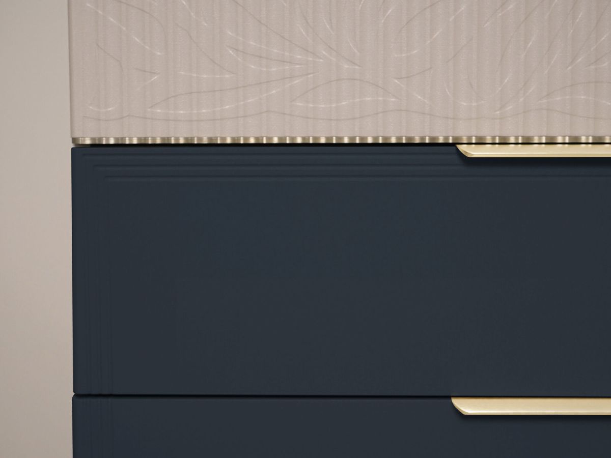 Комод «Флоренция 905.18» является частью модульной программы «Флоренция». Спальня «Флоренция» – это образец изящности и современной роскоши. Цвета «Кашемир» и «Индиго» образуют стильный и теплый дуэт: светлый тон наполняет пространство мягкостью, а насыщенный темно-синий придает интерьеру глубину и изысканность. Оригинальные элементы в цвете «сатиновое золото» и элегантная фрезеровка подчеркивают утонченный дизайн коллекции.