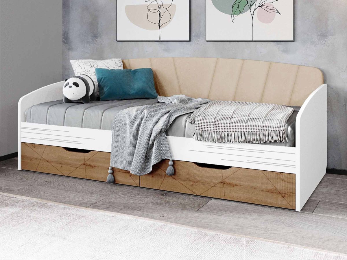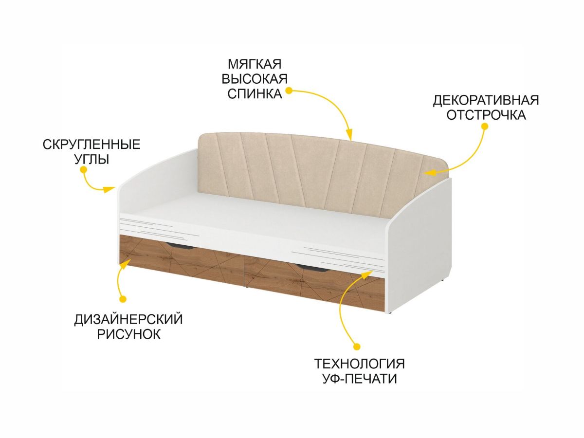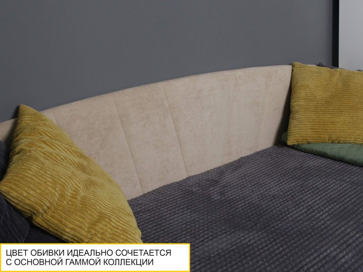 • Мягкая высокая спинка кровати создает дополнительный комфорт и защищает от холодной стены.