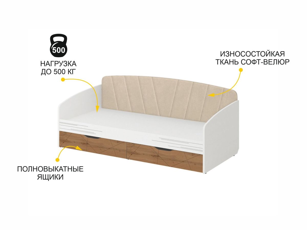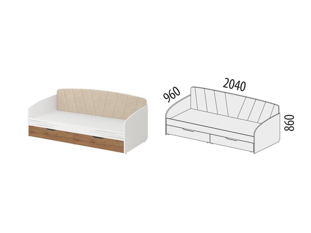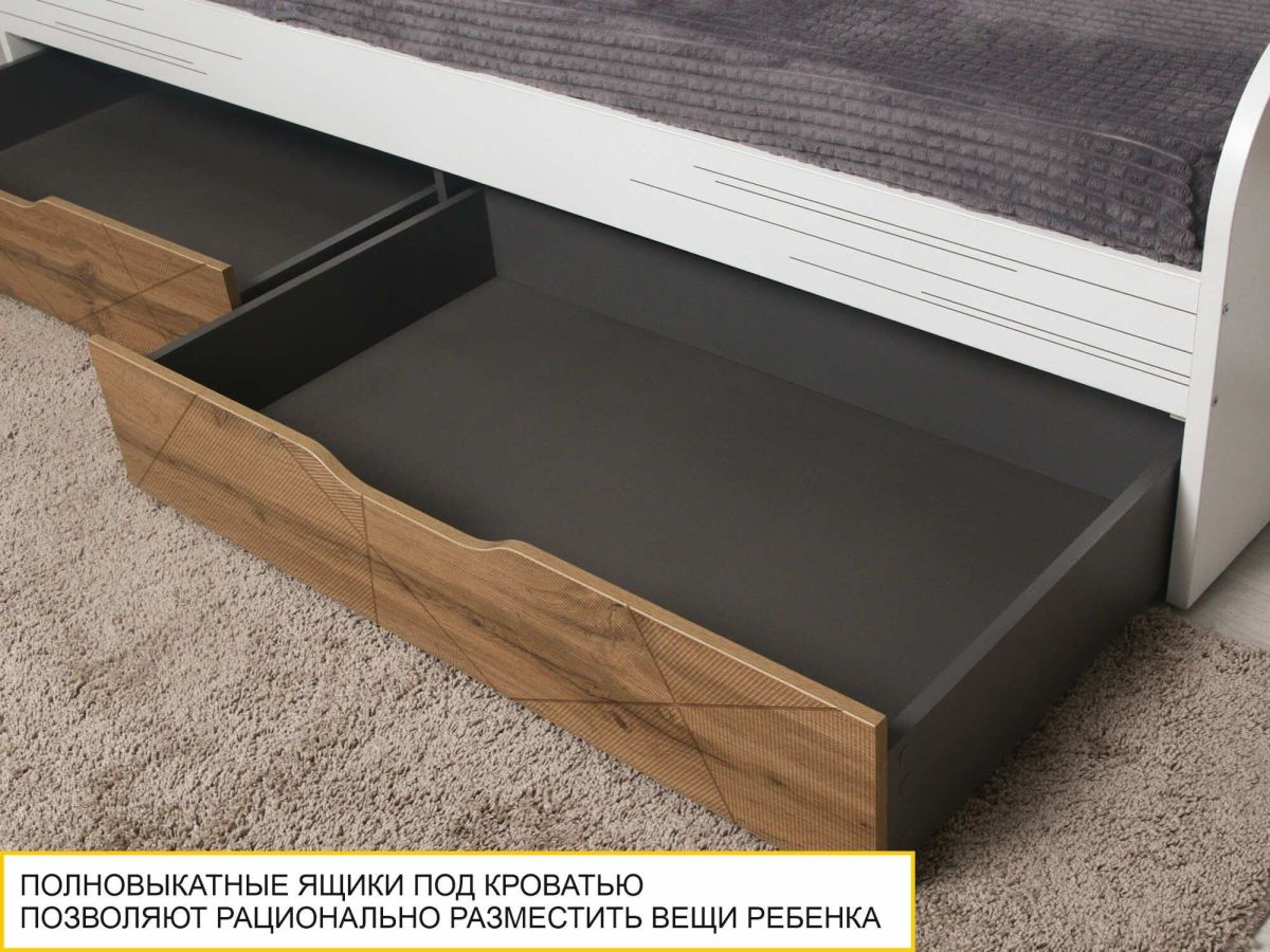• Под кроватью установлены два вместительных выдвижных ящика для удобного хранения вещей.