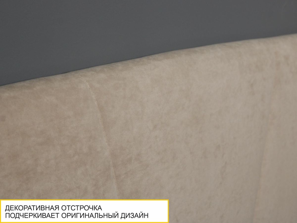 • Спинка кровати выполнена из прочной износостойкой ткани софт-велюр, приятной на ощупь. Материал не требует специального ухода и легко чистится.