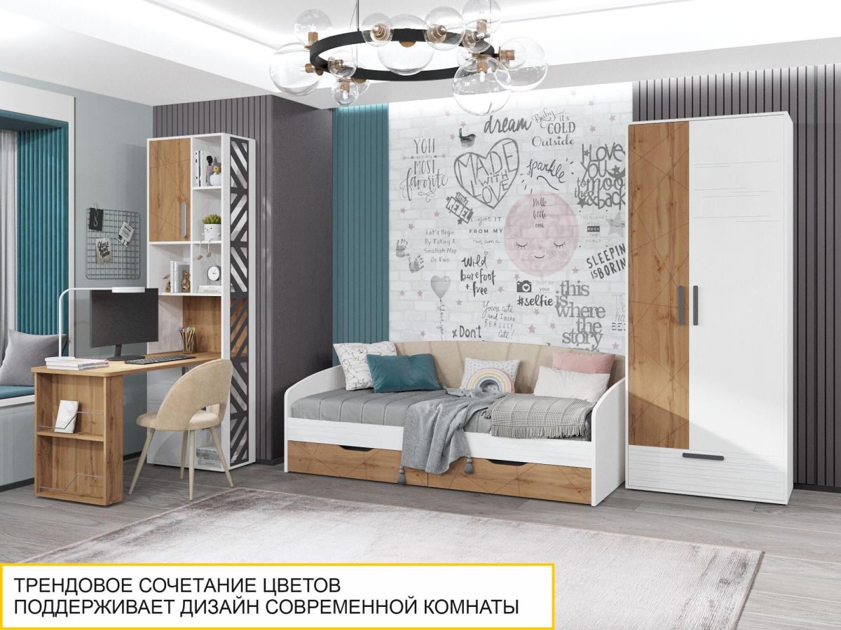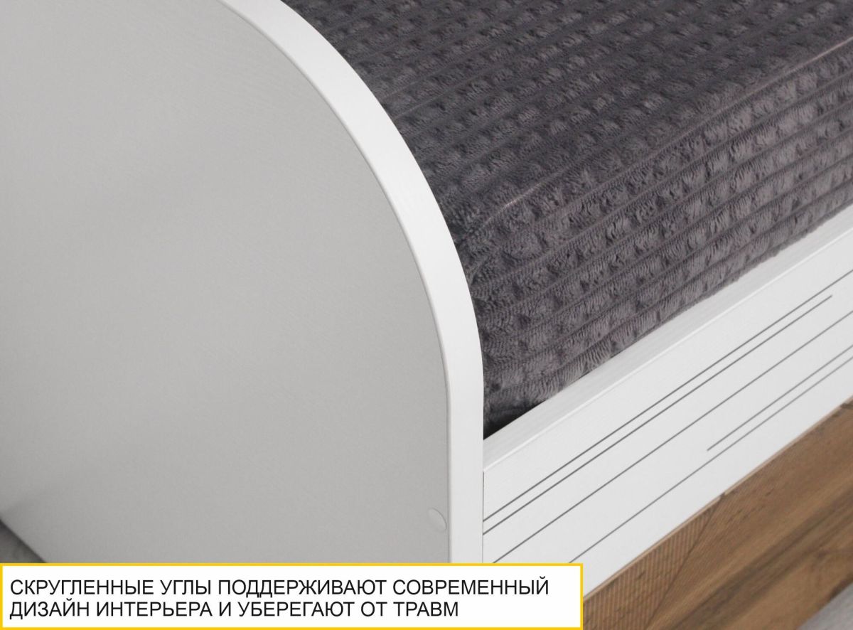 Кровать «Аляска 503.11» является частью модульной программы «Аляска 503». Коллекция подростковой «Аляска 503» - это современное и функциональное пространство для жизни и учебы. Сочетание белоснежного цвета с теплым оттенком натурального дерева создает стильный образ коллекции, а универсальный дизайн отлично подойдет как юношам и девушкам, так и детям дошкольного возраста.