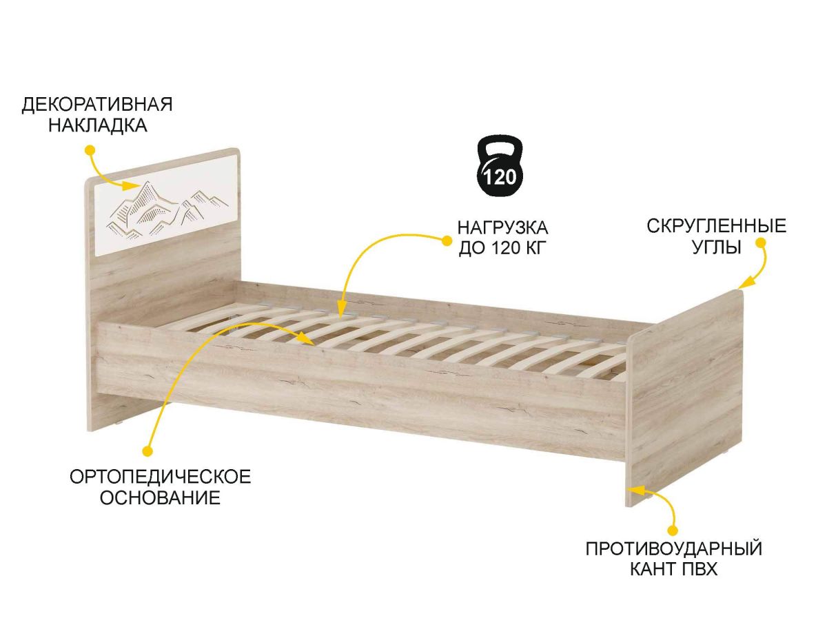 - Конструкция кровати выдерживает максимальную равномерно распределенную нагрузку до 120 кг.