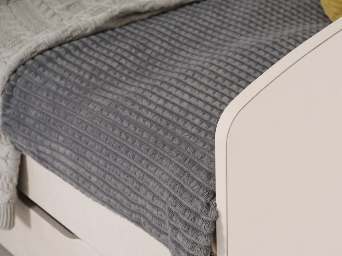 - Скругленные углы кровати обеспечивают безопасность и комфорт при эксплуатации.