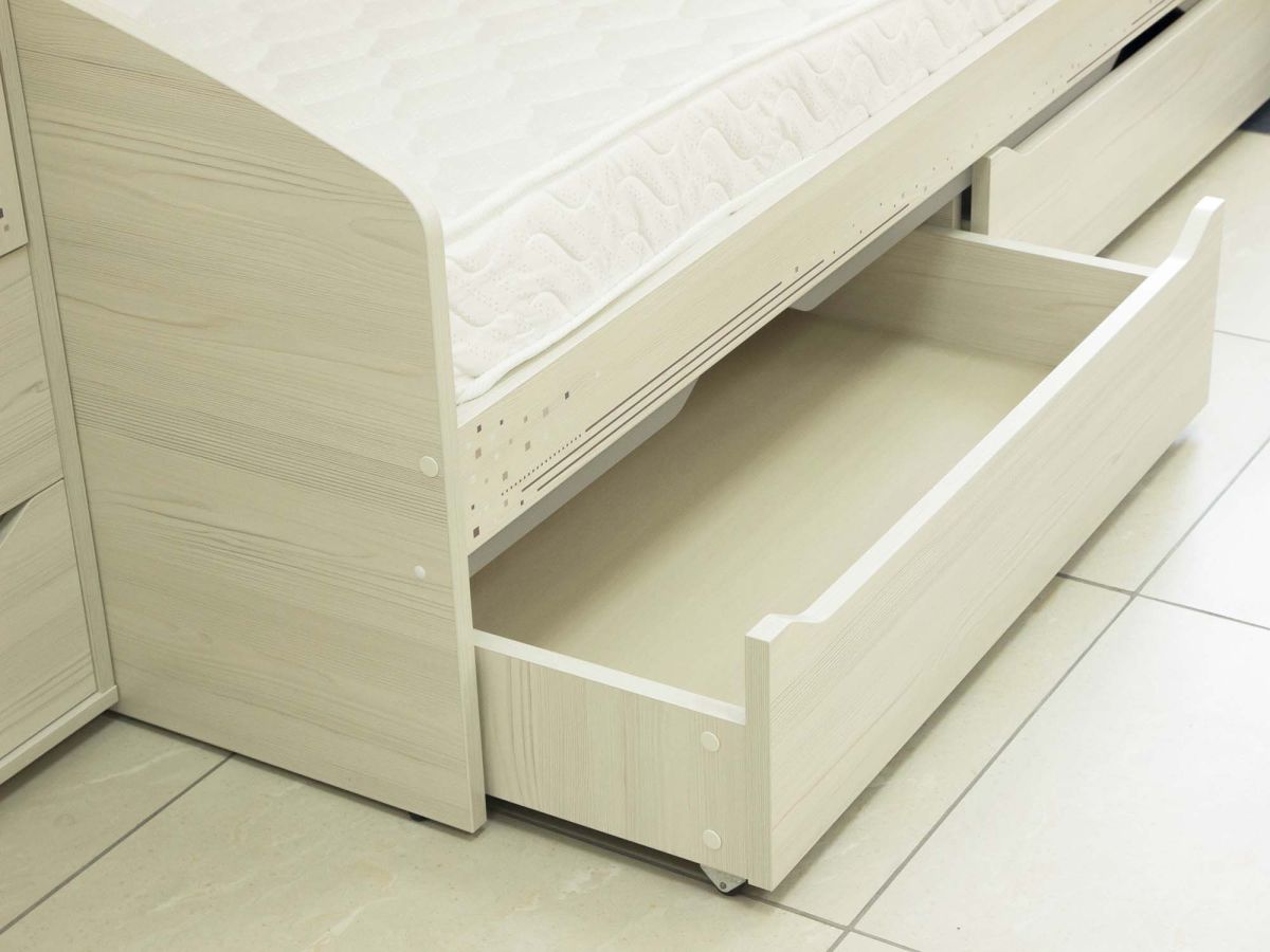 Кровать «Мегаполис 55.11» является частью модульной программы «Мегаполис». В модуле установлены два выдвижных ящика для хранения вещей.
