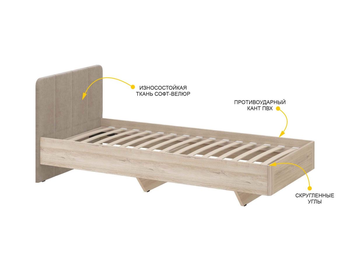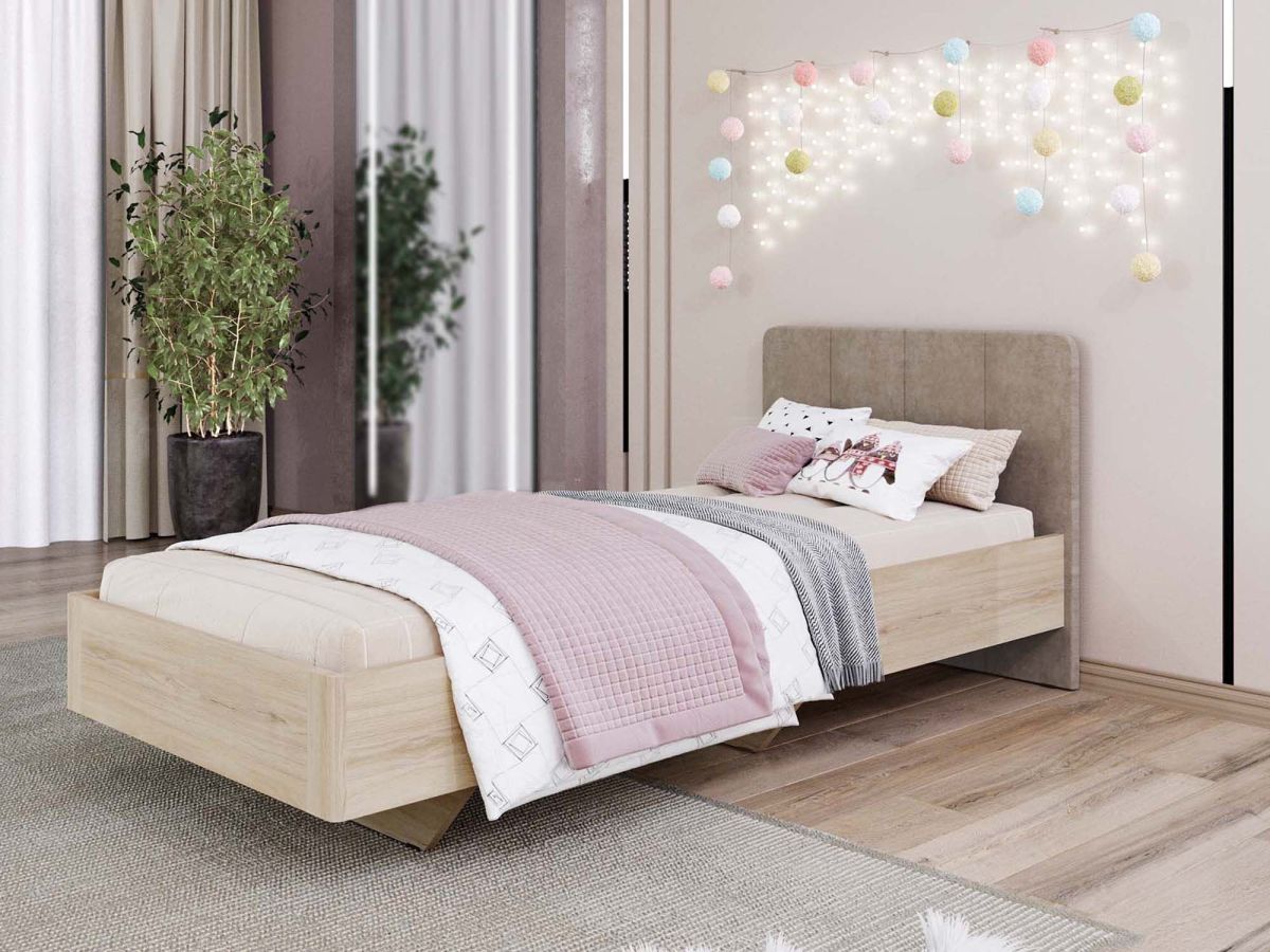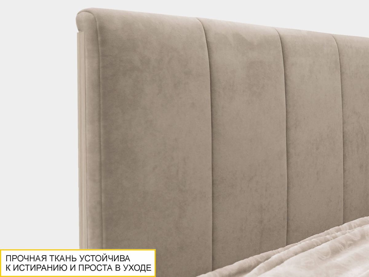 - Спинка кровати выполнена из прочной и износостойкой ткани, приятной на ощупь.