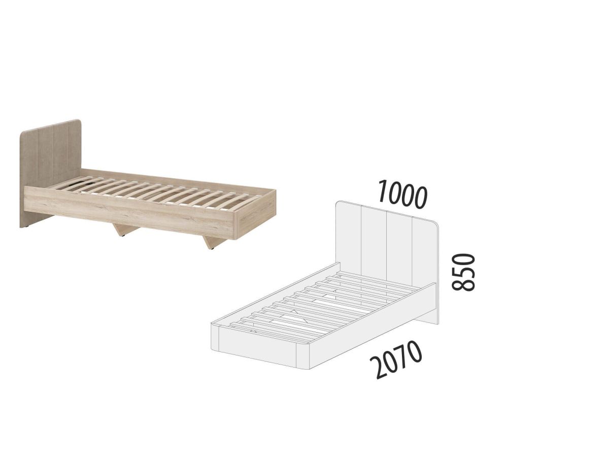 Размер спального места – 900x2000 мм.