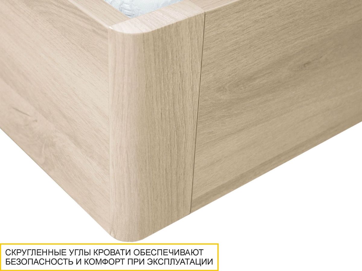 - Скругленные углы кровати обеспечивают безопасность и комфорт при эксплуатации.