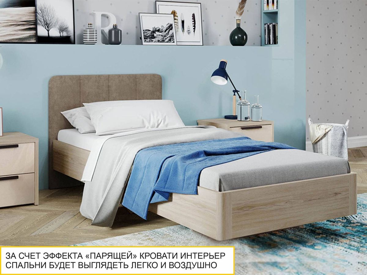 - Современный стиль изделия подчеркивается модным конструктивным решением: эффектом «парящей» кровати.