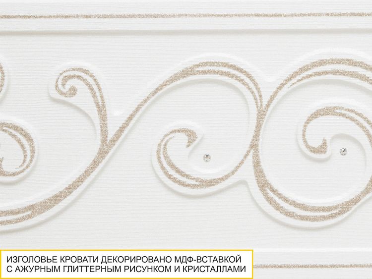 • Спинка кровати декорирована оригинальной фрезеровкой, глиттерным рисунком и кристаллами премиум-класса.