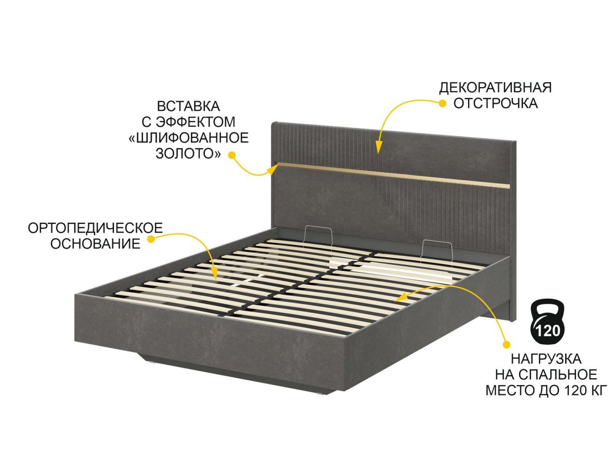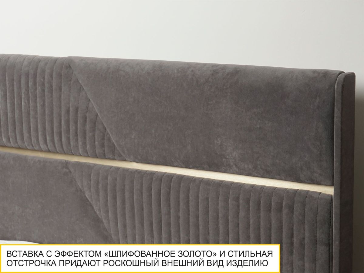- Стильная отстрочка в сочетании с металлизированной декоративной вставкой с эффектом шлифованного золота придают кровати изысканный внешний вид.