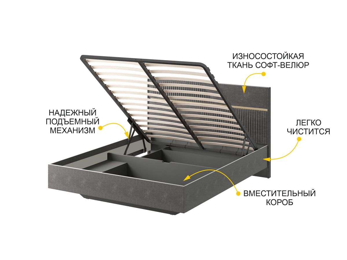 - Актуальный цвет обивки кровати «Десерт серый» прекрасно сочетается с модулями коллекции, а также с предметами интерьера любой другой цветовой гаммы.