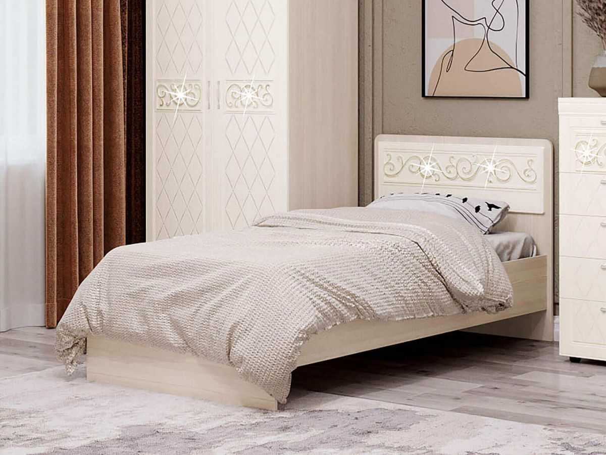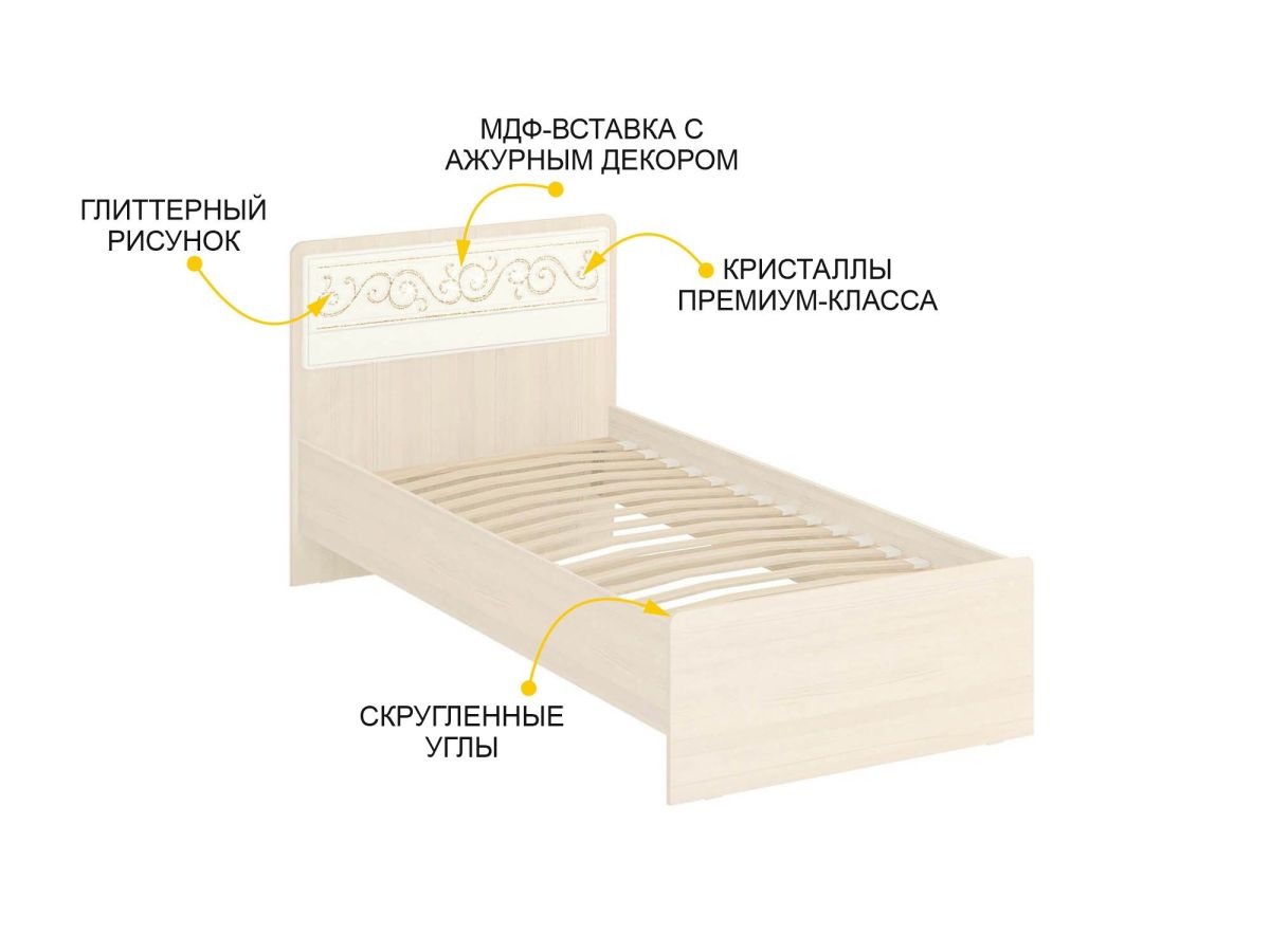 - Спинка кровати декорирована оригинальной фрезеровкой, глиттерным рисунком и кристаллами премиум-класса.