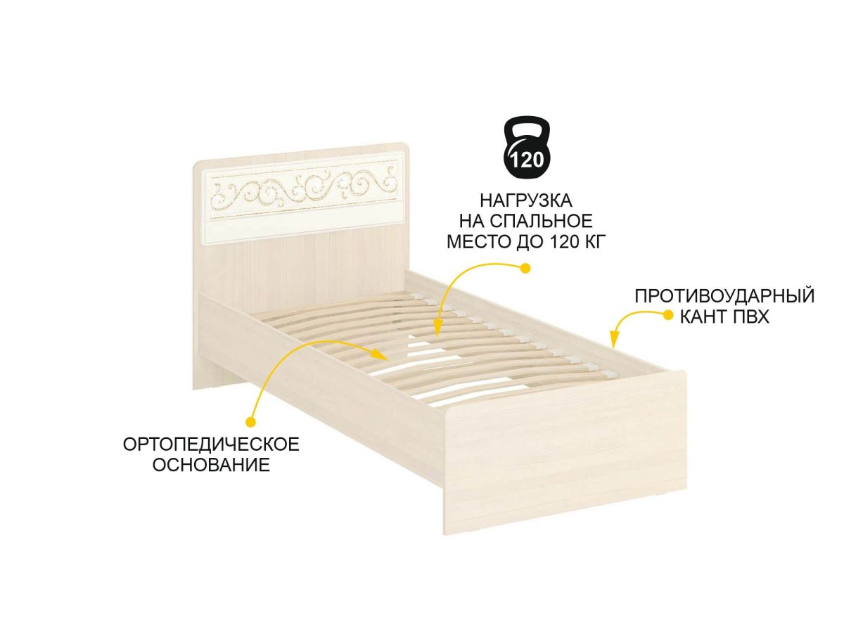- Корпус кровати произведен из ЛДСП повышенной плотности. Материал устойчив к механическим и термическим воздействиям. ЛДСП выдерживает min 300 циклов на истирание, что почти в 5 раз больше, чем требуется по ГОСТу (min 65).