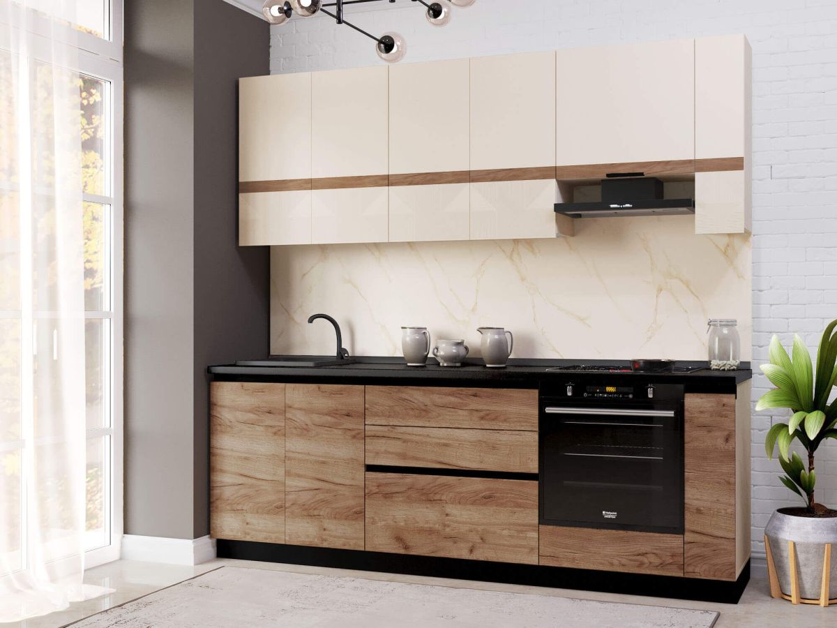Широкий модульный ряд поможет создать уютный и функциональный проект с учетом индивидуальных особенностей помещения Вашей кухни. Вы можете дополнить набор необходимыми модулями или убрать ненужные. Для этого добавьте выбранный набор в корзину и там удалите лишние модули.