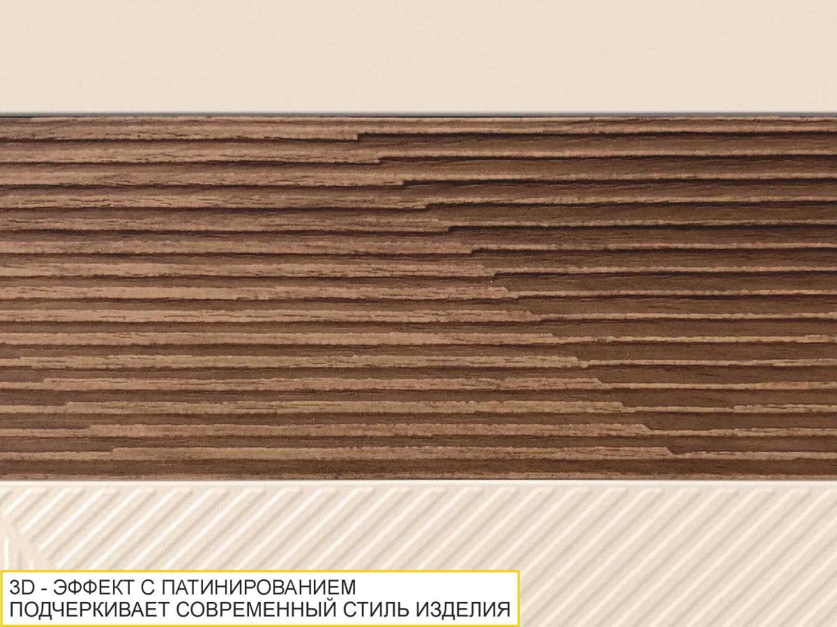 Кухня «Дакота» – воплощение современных тенденций и неповторимого стиля. Сдержанная цветовая гамма в сочетании с древесной текстурой дуба подарят ощущение тепла и уюта Вашему дому, контрастные элементы добавят выразительности и индивидуальности. Легкий 3D-декор с геометричным рисунком на фасадах верхних шкафов подчеркивает современный стиль кухни, а акцентные древесные вставки с патинированным рисунком придают оригинальный внешний вид. Декор, выполненный с технологией патинирования, не стирается и не тускнеет со временем.