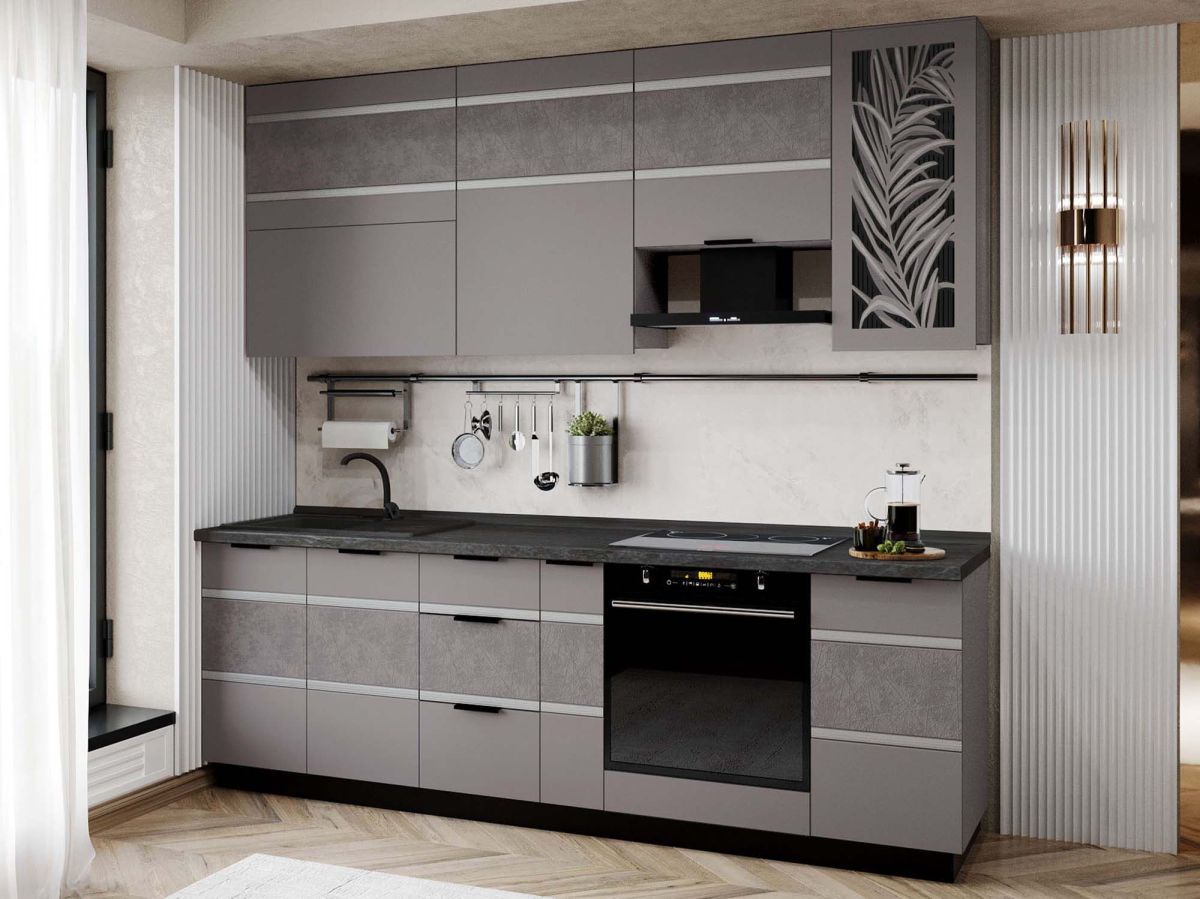 Кухня «Грейс» создана для тех, кто мечтает создать в доме пространство, наполненное природной гармонией и красотой. Глубокий темно-серый цвет создает в интерьере атмосферу спокойствия и надежности, а природное тепло натурального дерева добавляет мягкости и гармоничности. Оригинальное 3D-тиснение на фасадах, четкая линейность декоративной вставки с эффектом шлифованной платины делают дизайн необычным и привлекающим внимание. Контрастные акценты придают кухне выразительность и индивидуальность. Кухня «Грейс» обладает особой энергетикой, которая подчеркивает безупречное чувство стиля и внутреннюю свободу своих хозяев. Умело подобранные аксессуары позволят Вам с легкостью менять характер интерьера в зависимости от настроения/трендов.