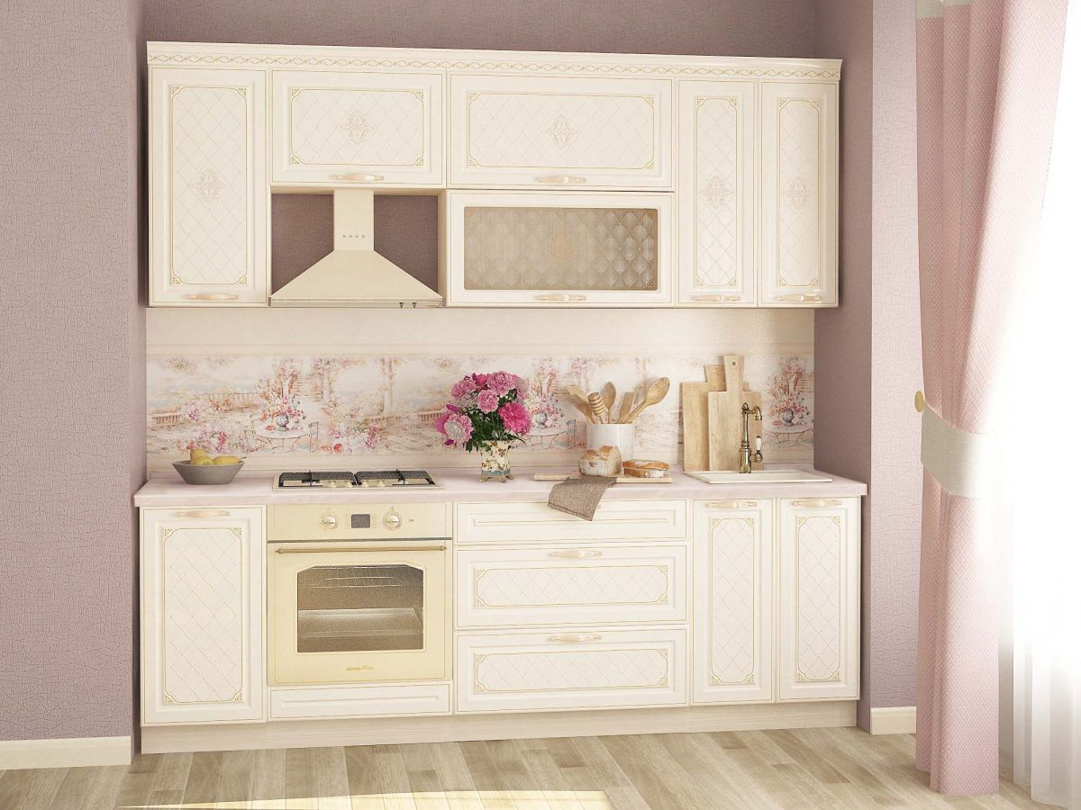 Набор мебели для кухни «Милана» - воплощение стиля и нежной роскоши. Ванильный цвет фасадов и изысканность декора очарует даже самого требовательного покупателя. Гармоничное сочетание светлого корпуса и фасадов зрительно увеличит пространство кухни.