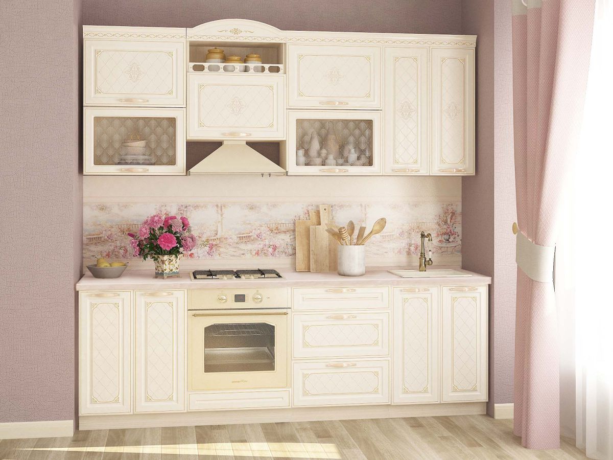 Набор мебели для кухни «Милана» - воплощение стиля и нежной роскоши. Ванильный цвет фасадов и изысканность декора очарует даже самого требовательного покупателя. Гармоничное сочетание светлого корпуса и фасадов зрительно увеличит пространство кухни.