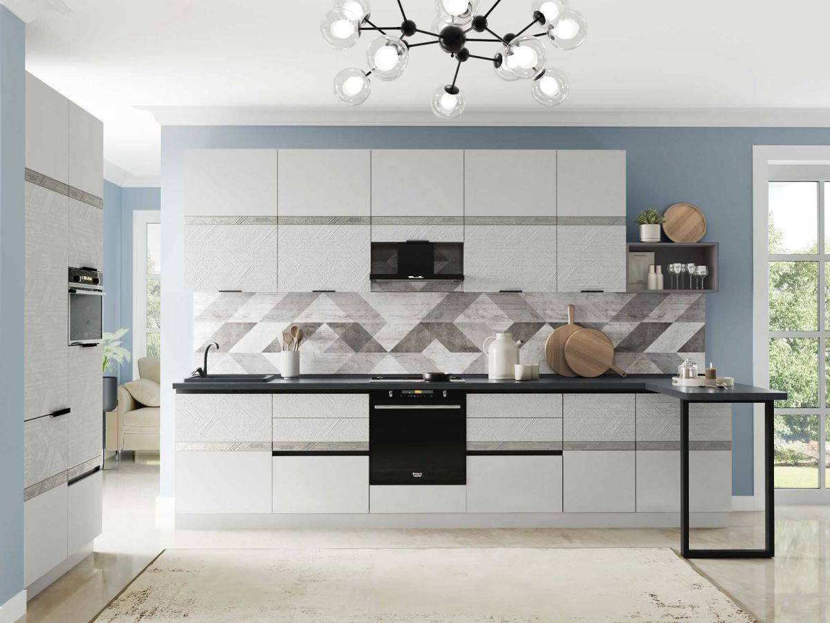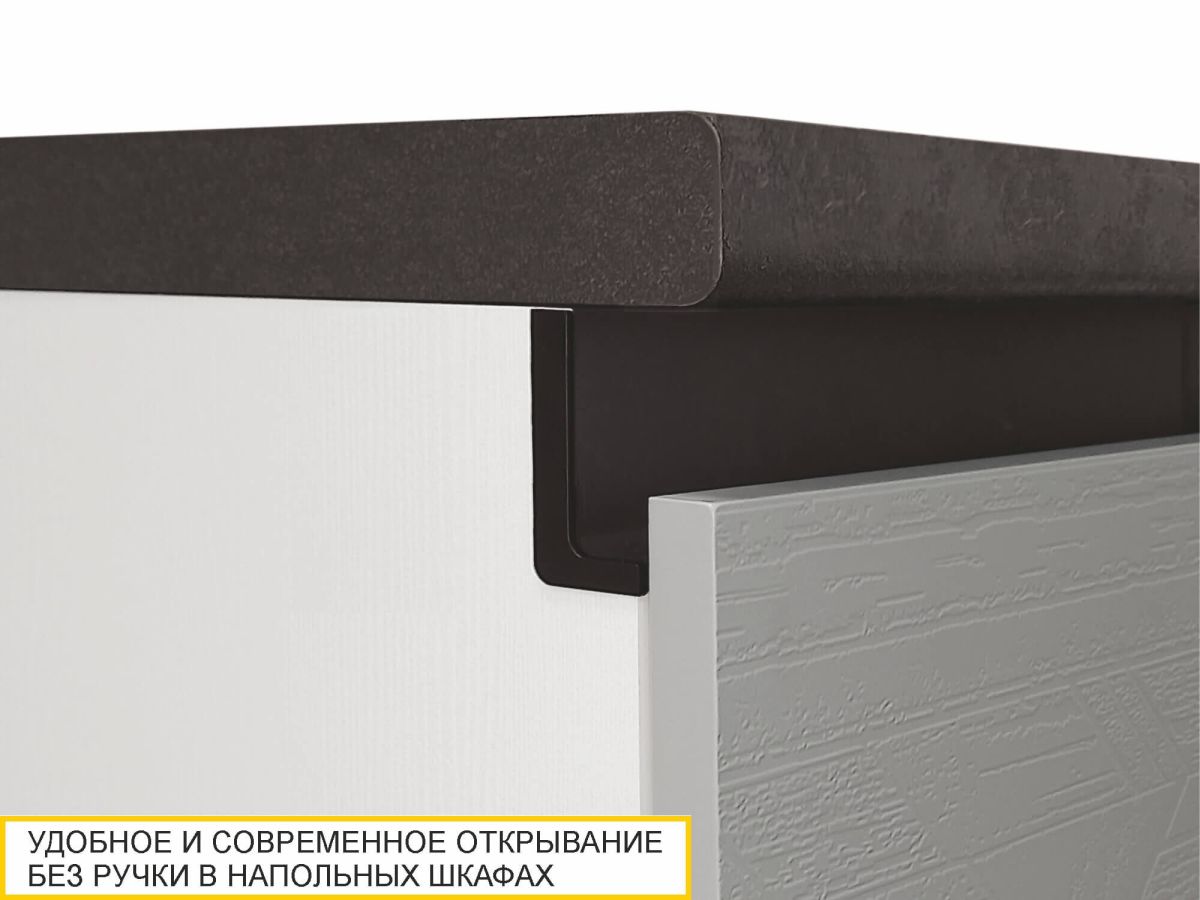 Кухня «Бостон» - воплощение современных тенденций и неповторимого стиля. Отличительная особенность коллекции – сочетание лаконичных форм и высокой функциональности. Актуальный серый цвет является универсальным и легко сочетается с различными цветами и фактурами. Объемное дизайнерское тиснение на фасадах подчеркивает современный стиль кухни. Рельефный рисунок придает оригинальный внешний вид. Контрастные акцентные вставки на фасадах с объемным патинированным рисунком создают сложный образ и придают индивидуальность Вашей кухне.