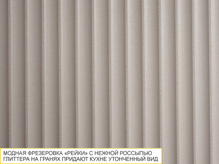 Кухня «Флоренция» - это образец изящности и современной роскоши. Она идеально подходит для тех, кто ценит не только функциональность, но и особую изысканность и шик. Безупречный образ, основанный на уникальном дизайне, инновационных технологиях и исключительном мастерстве исполнения, делает кухню «Флоренция» магнитом для притяжения внимания. Гармонично подобранные цвета создают ощущение уюта и спокойствия, а акцентные ручки и оригинальные металлические вставки в цвете «сатиновое золото» придают мебели роскошный вид. Модная фрезеровка «рейки» на фасадах в сочетании с текстурной поверхностью и изящным дизайнерским рисунком подчеркивает неповторимый дизайн коллекции.