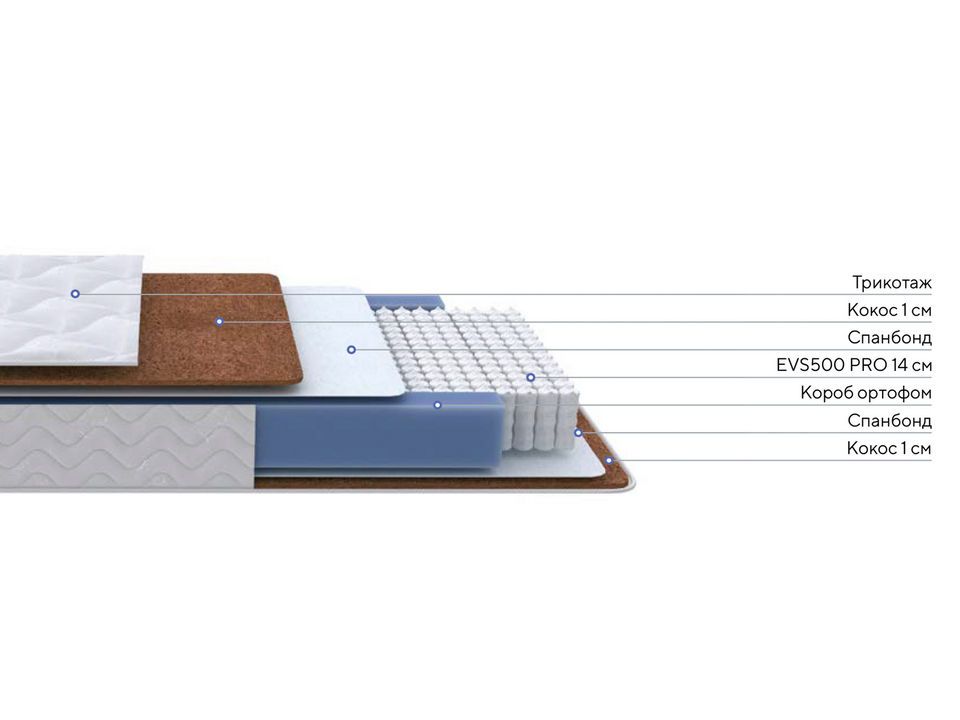 Комфортные слои выполнены из материала на основе натурального кокосового волокна, хорошо пропускают воздух и создают оптимальный микроклимат спального места.