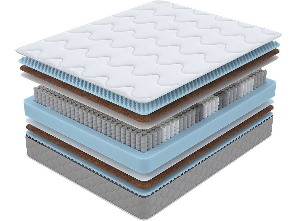 Отличные анатомические свойства матраса SOVA Plus M обеспечивает 9-ти зональный блок независимых пружин, в котором под каждую зону тела предназначен отдельная зона пружин разной жесткости. Ячеистая пена Ортофом подстраивается под каждый изгиб вашего тела, создавая легкий микромассажный эффект. Кокосовое волокно в составе матраса позволяет ему выдерживать большие нагрузки и гарантирует долговечность.