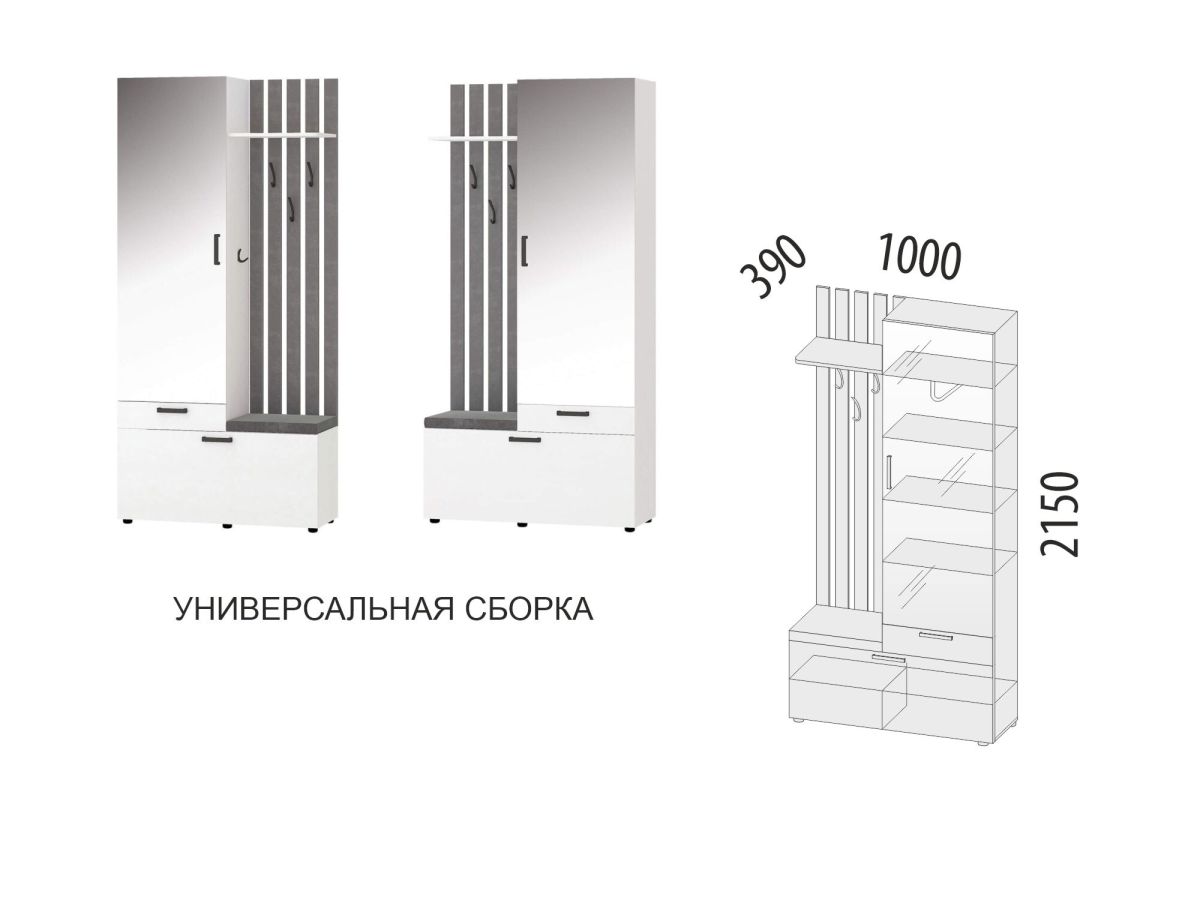 Мини-прихожая с крючками (лев/прав) Денвер 400.07.1