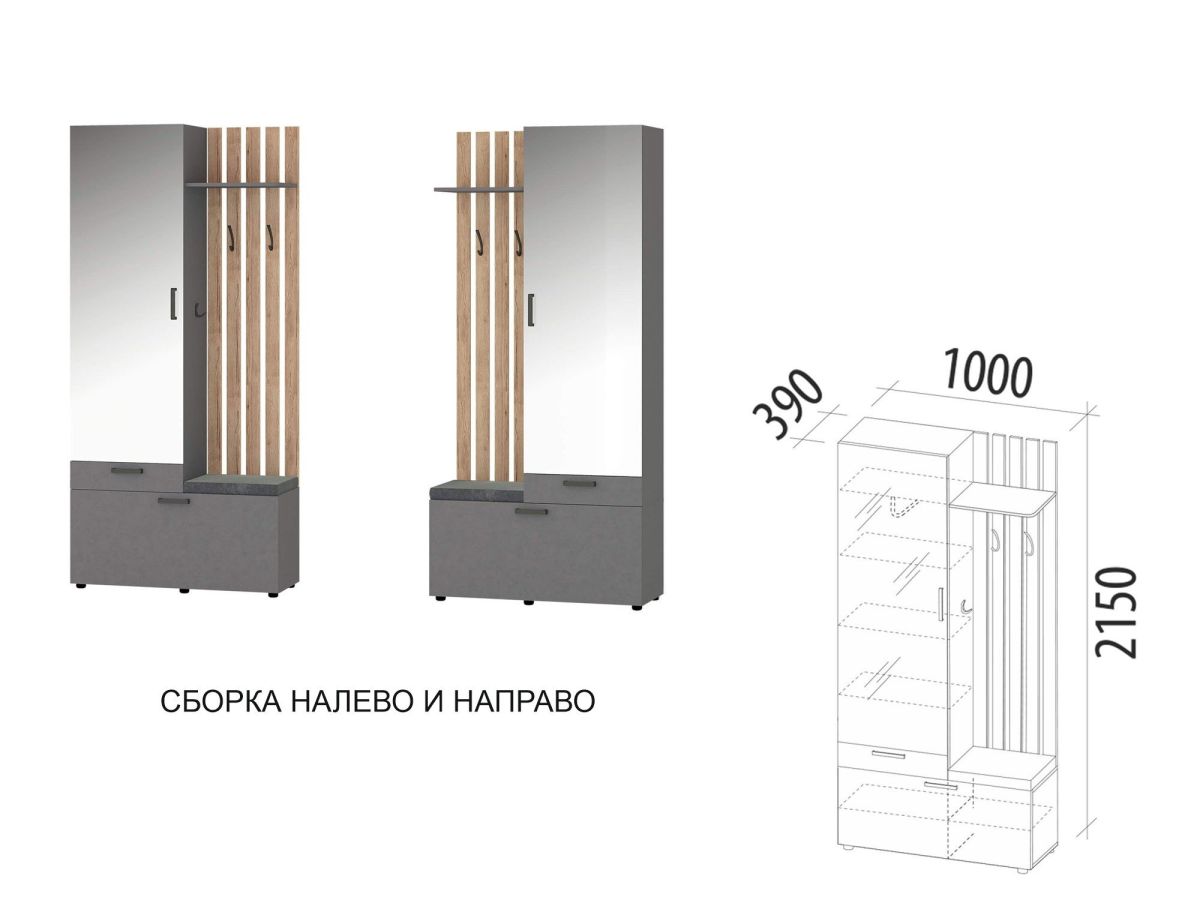 Мини-прихожая с крючками (лев/прав) Денвер 401.07