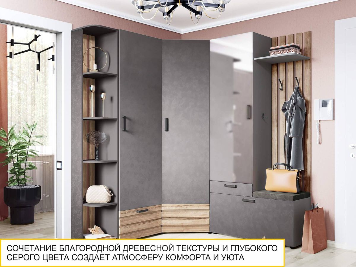 «Денвер 401» – современное решение для обустройства стильной и функциональной прихожей. Натуральные тона, правильные акценты и четкость линий – отличительные особенности коллекции. Текстура дерева на фасаде вносит элементы экостиля и придает прихожей индивидуальности. Модули коллекции комплектуются высококачественной фурнитурой, которая прослужит долгие годы.
