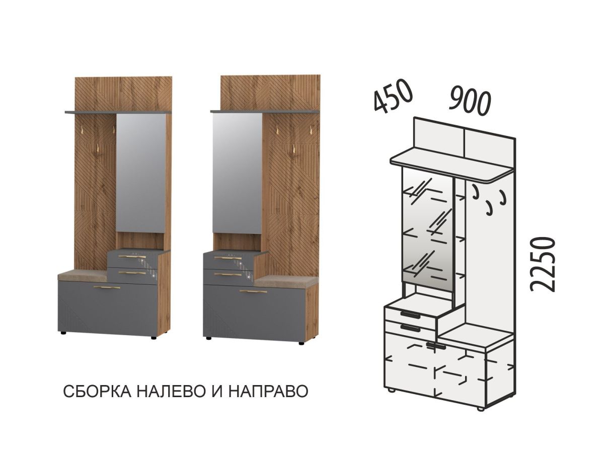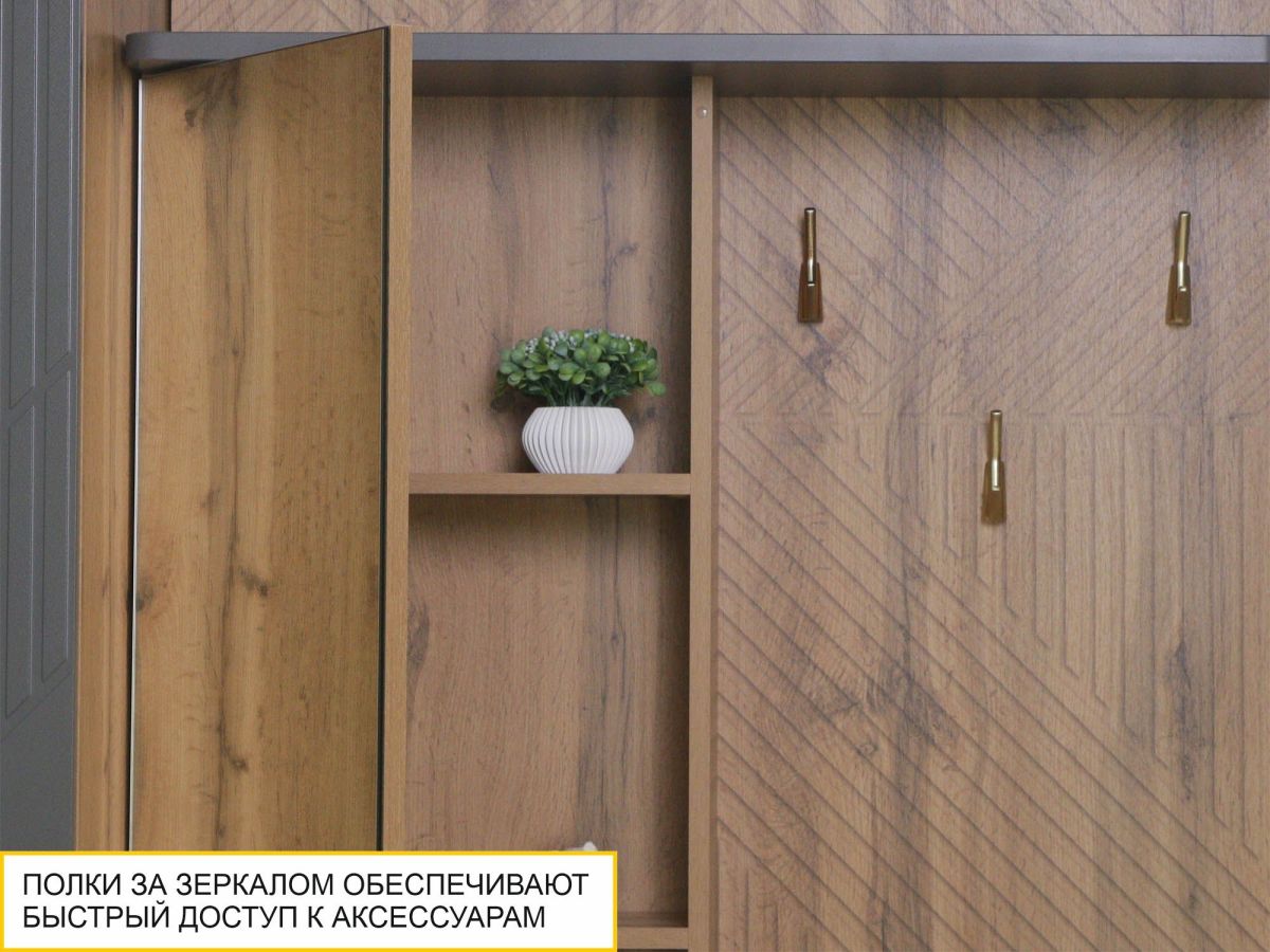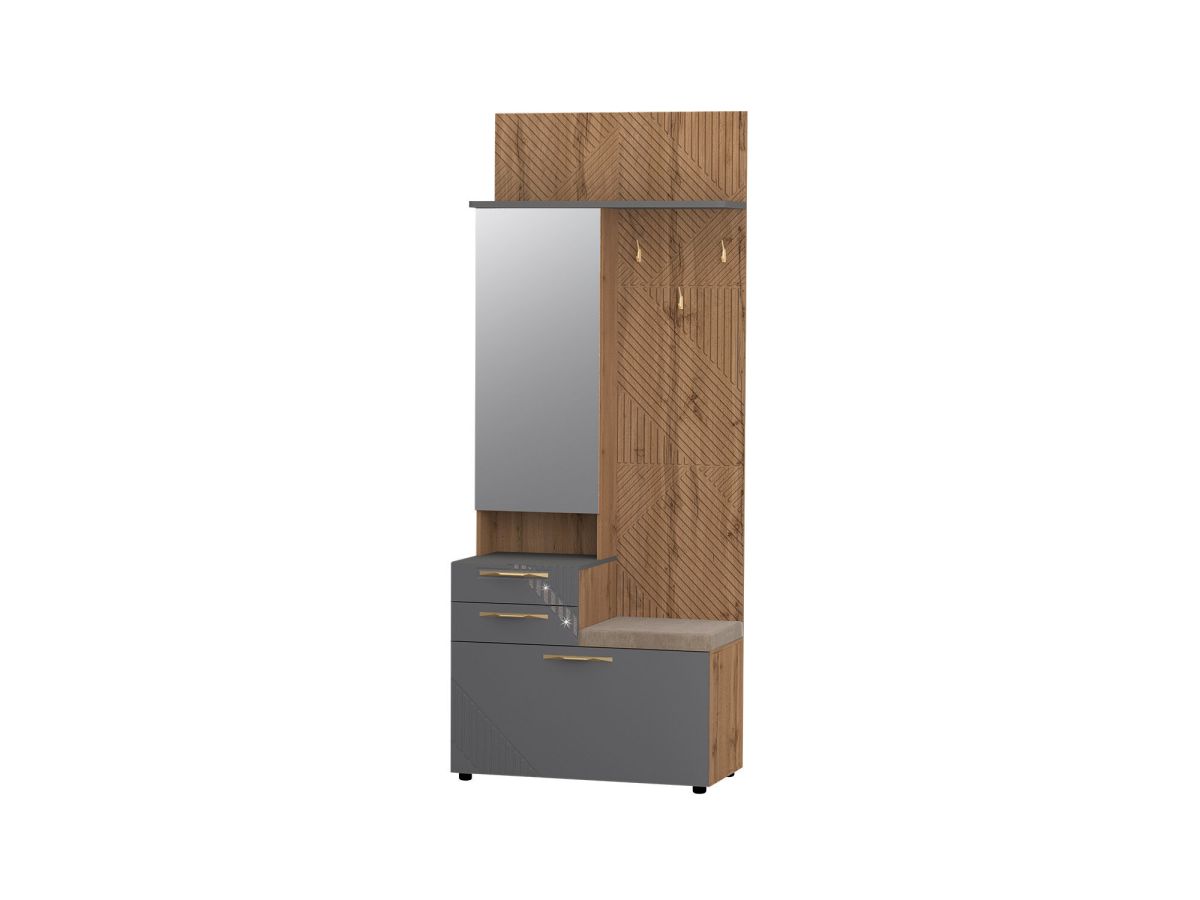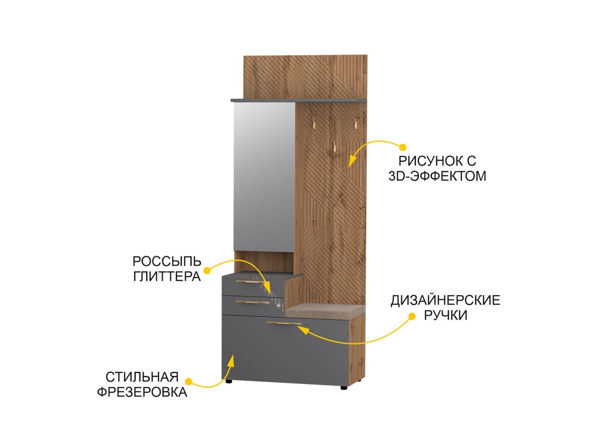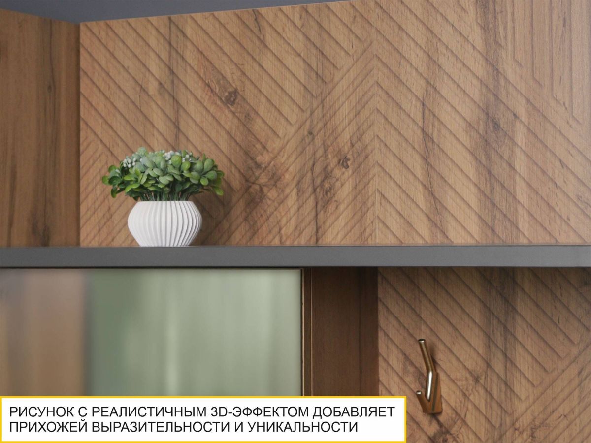 Мини-прихожая с крючками «Монако 402.08» является частью модульной серии «Монако». «Монако 402» – образец элегантного стиля и утонченного вкуса. Сочетание матовой графитовой поверхности фасадов с благородной древесной текстурой «Дуб Вотан» создает особую атмосферу гармонии и комфорта.