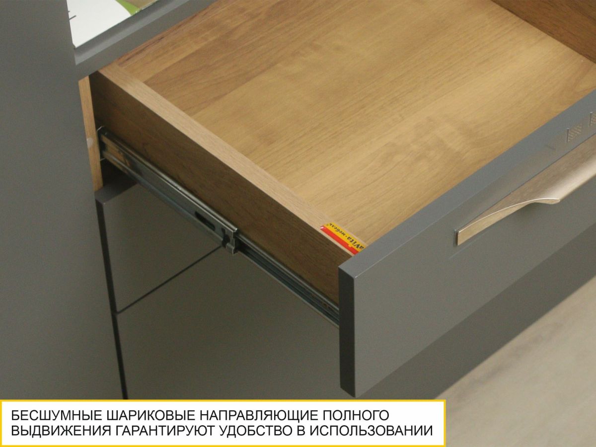 - Шариковые направляющие выдвижных ящиков обеспечивают плавный бесшумный ход и длительный срок эксплуатации изделия.