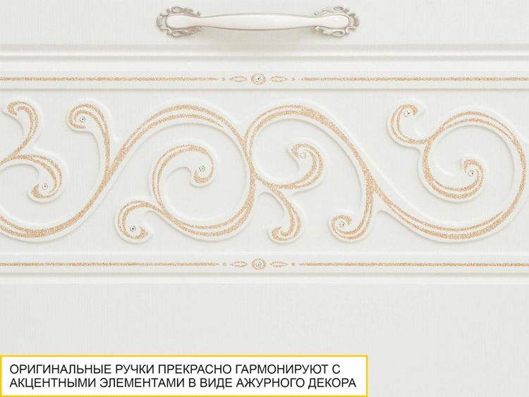 - Оригинальные ручки прекрасно гармонируют с акцентными элементами в виде ажурного декора.
