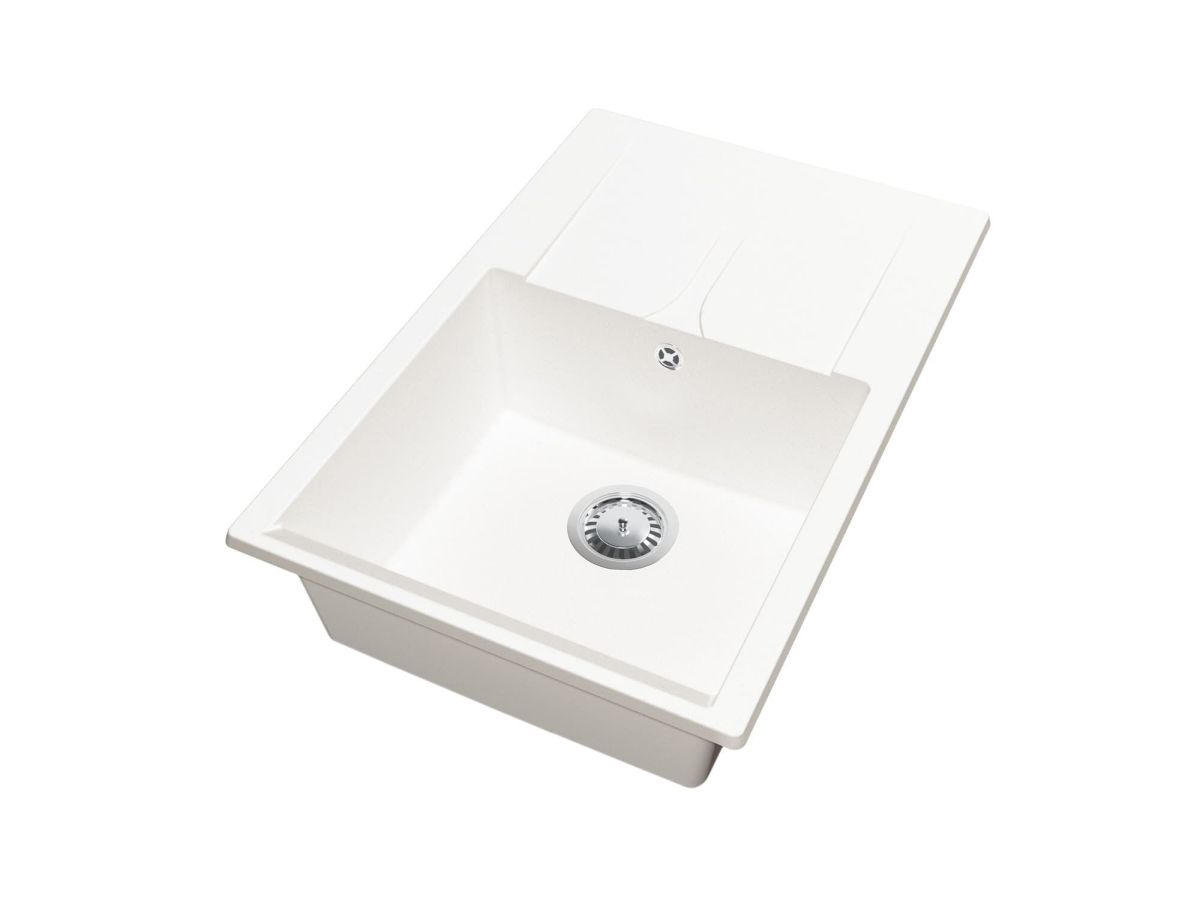 Белый цвет придаёт кухне ощущение свежести и чистоты. Он гармонично сочетается с любыми оттенками столешниц, визуально увеличивая пространство. В современных интерьерах белая мойка становится стильным акцентом, подчеркивающим изысканность дизайна. Этот универсальный цвет вписывается в любой интерьер, от классического стиля до минималистичного, придавая кухне элегантность и утонченность. Текстура «гранит» напоминает натуральный камень и придаёт мойке элегантный и современный вид. Такое покрытие подчёркивает уникальность и современность кухонного пространства, делая мойку центральным элементом.