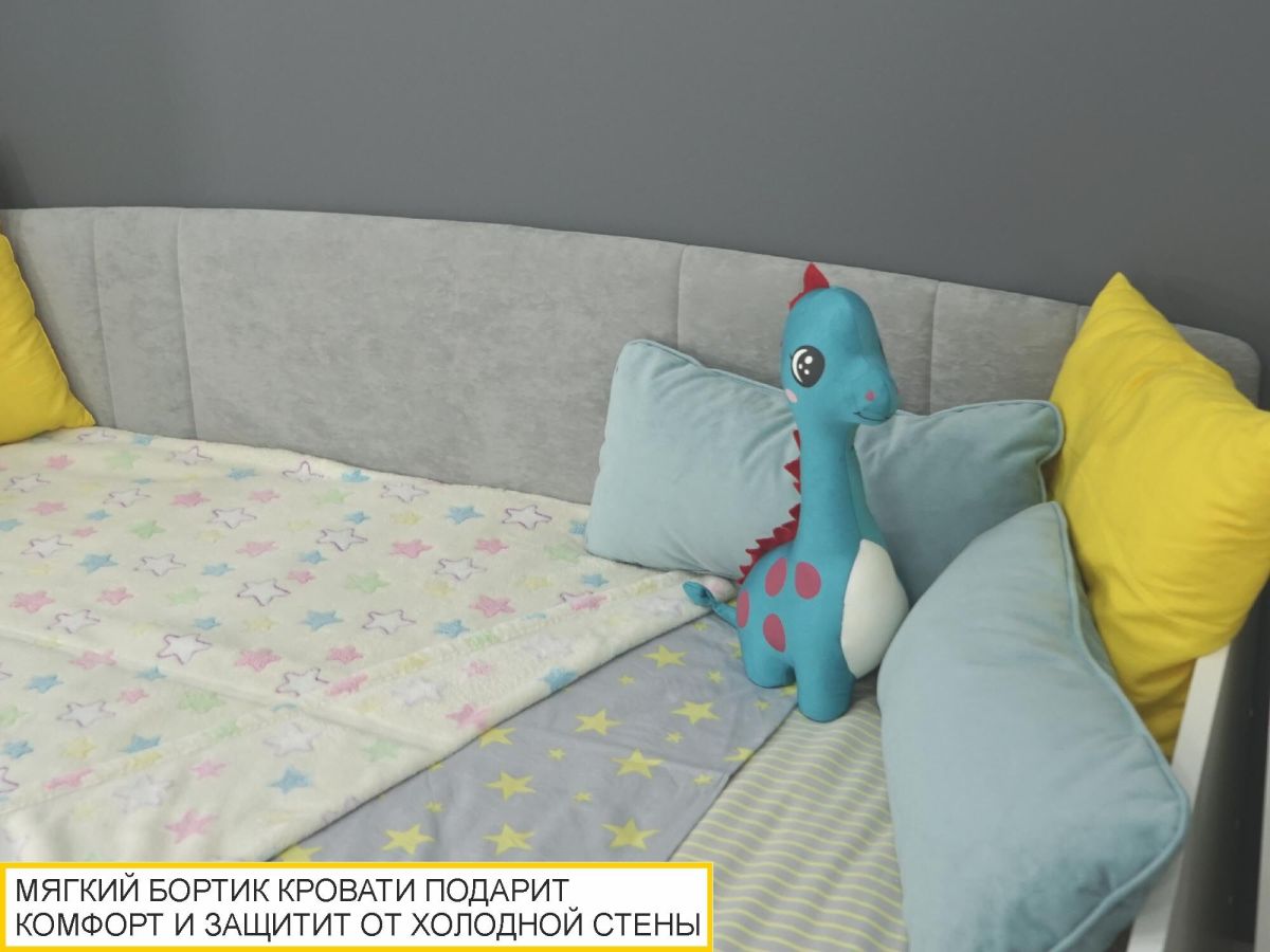 - Спинка кровати выполнена из прочного и износостойкого софт-велюра, отличается повышенной степенью комфорта, что обеспечивается мягким наполнителем и приятной на ощупь тканью обивки.