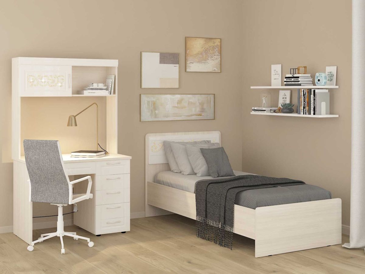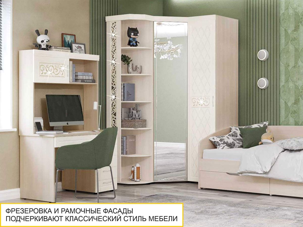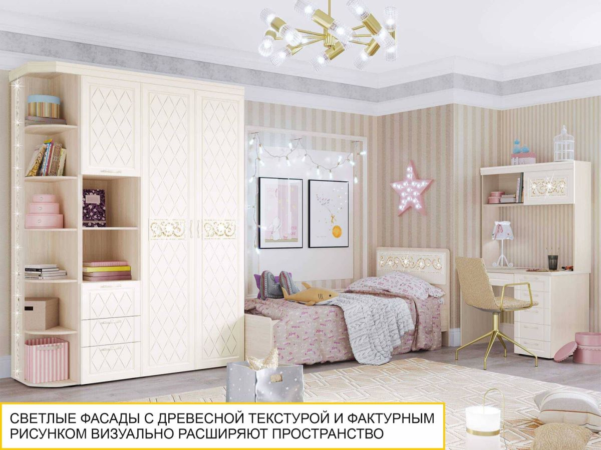 Набор подростковой мебели «Тиффани 50» является частью модульной программы «Тиффани». Коллекция «Тиффани» - символ классического стиля и незабываемого шарма. Нежные светлые фасады и изысканность декора - отличительная черта коллекции. Ажурные декоративные элементы и кристаллы придают уникальность коллекции.