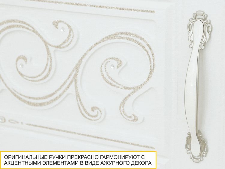 - Оригинальные ручки прекрасно гармонируют с акцентными элементами в виде ажурного декора.
