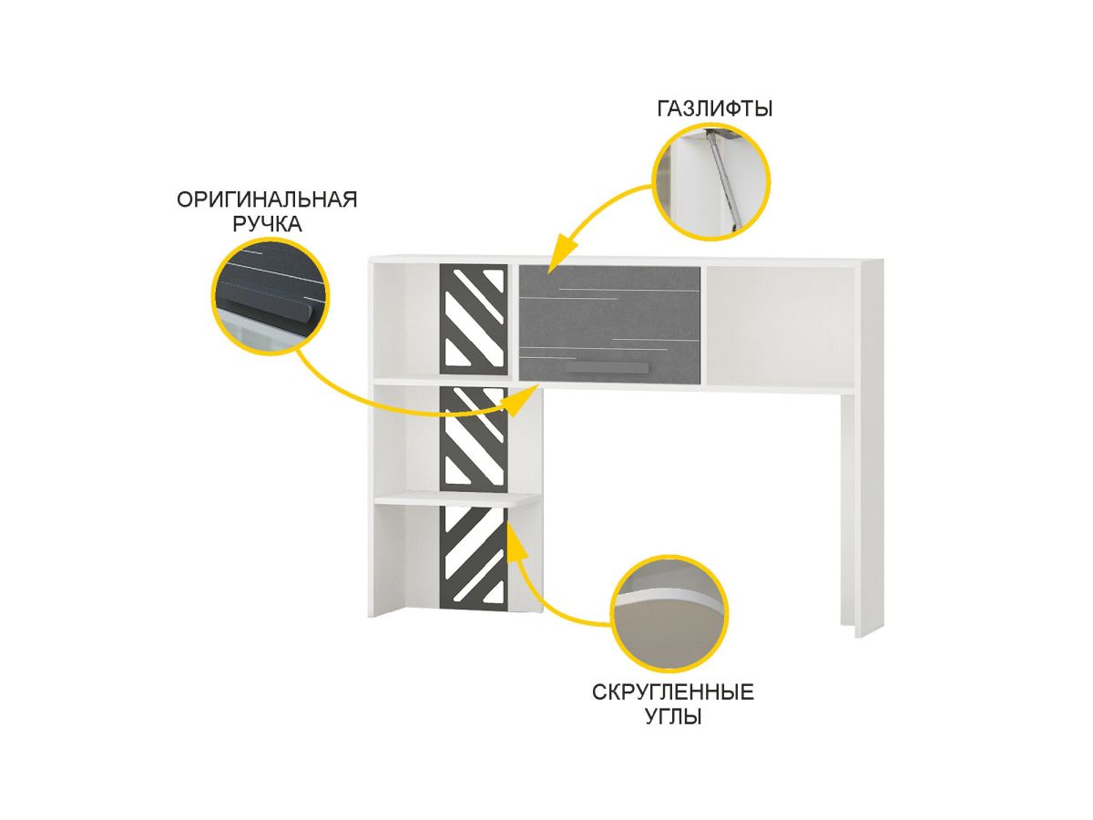 Надстройка идеально подходит к компьютерному столу серии, расширяет его функциональность за счет вместительных полок.