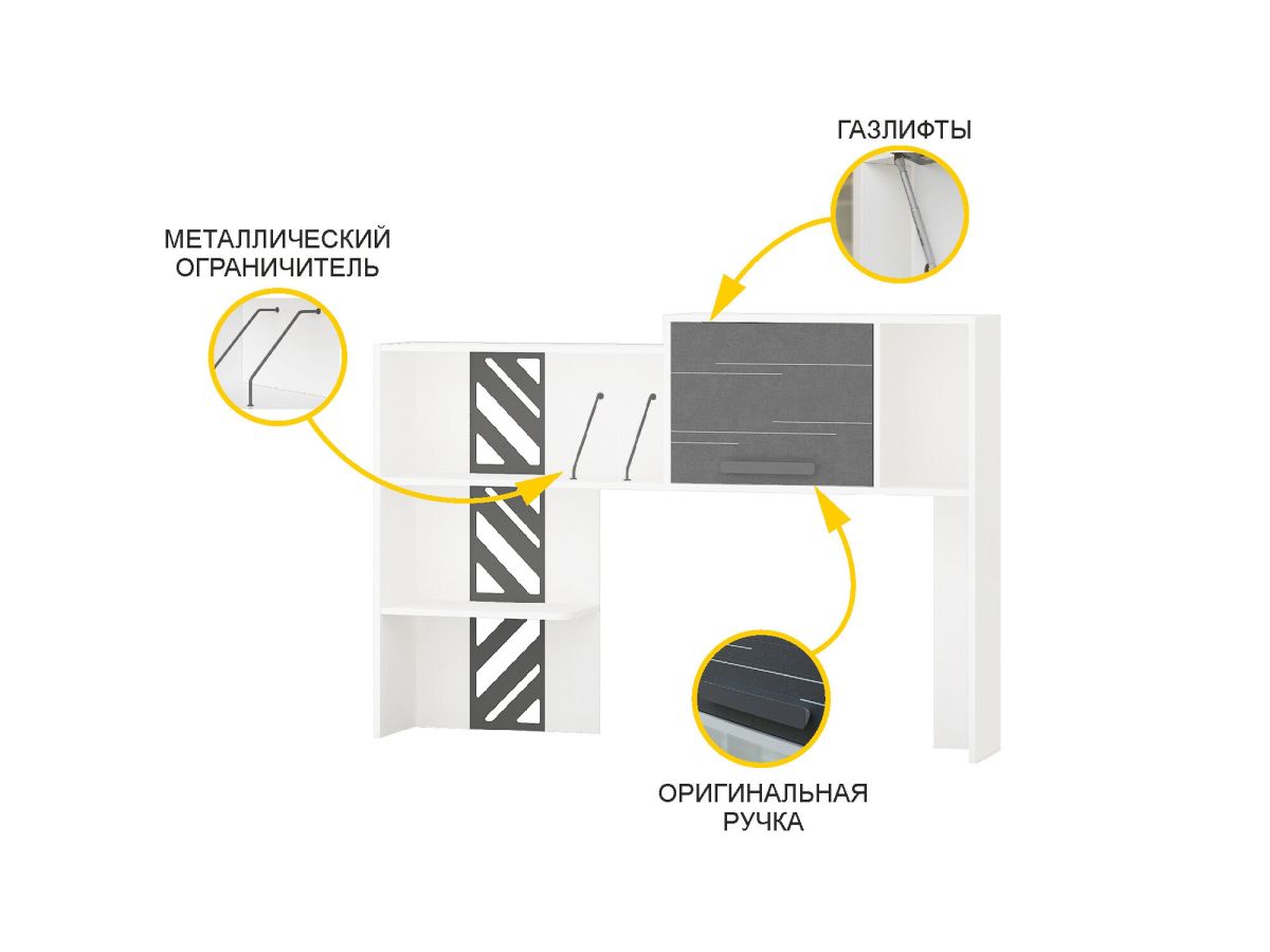 - Надстройка произведена из ЛДСП повышенной плотности. Материал устойчив к механическим и термическим воздействиям. ЛДСП выдерживает min 300 циклов на истирание, что почти в 5 раз больше, чем требуется по ГОСТу (min 65).
