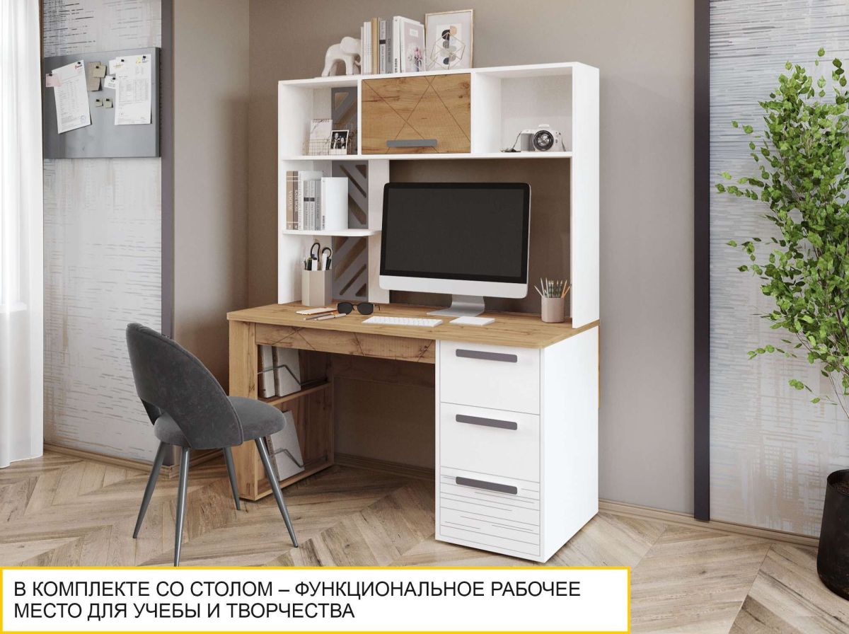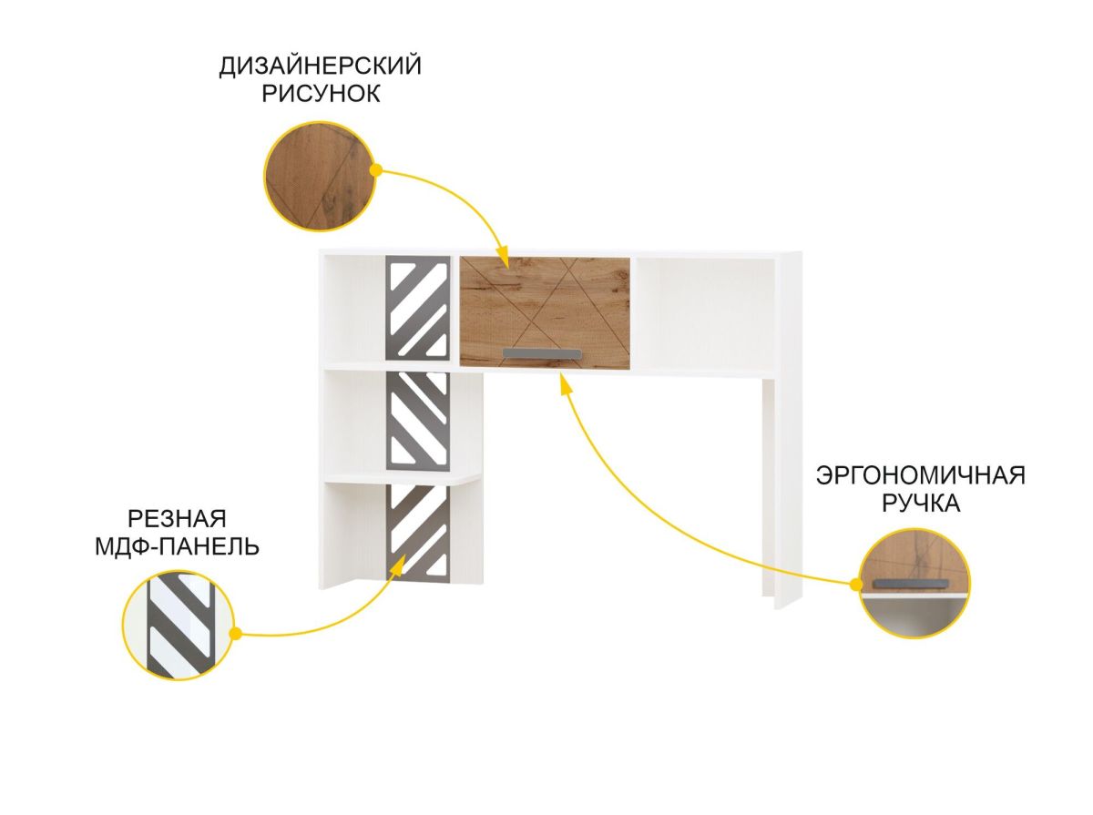 Надстройка идеально подходит к компьютерному столу серии, расширяет его функциональность за счет вместительных полок.
