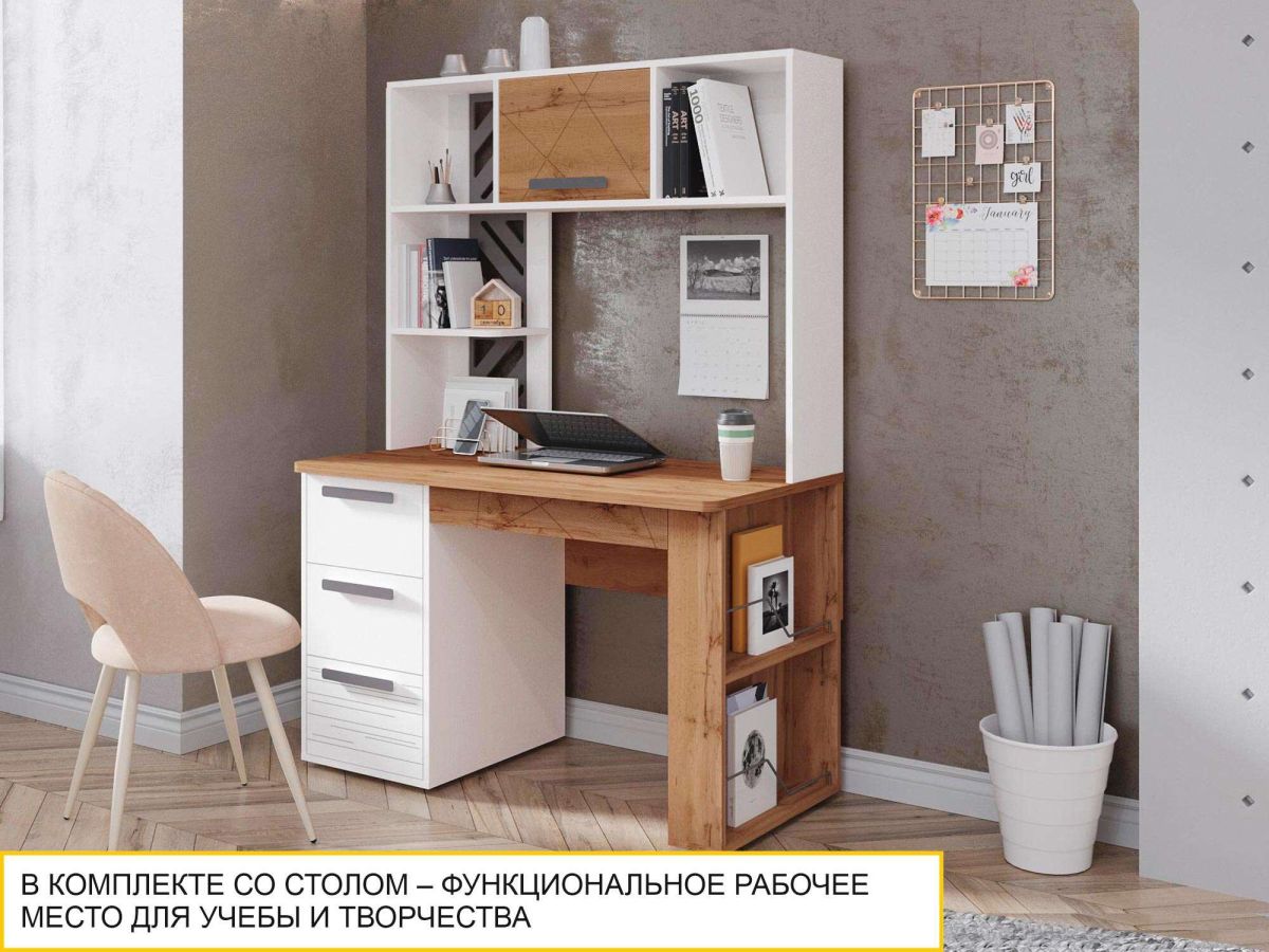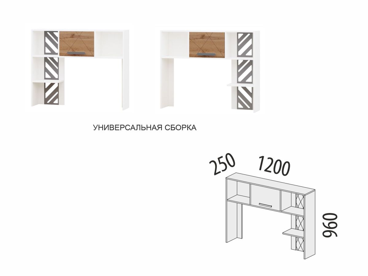 Надстройка идеально подходит к компьютерному столу серии, расширяет его функциональность за счет вместительных полок.