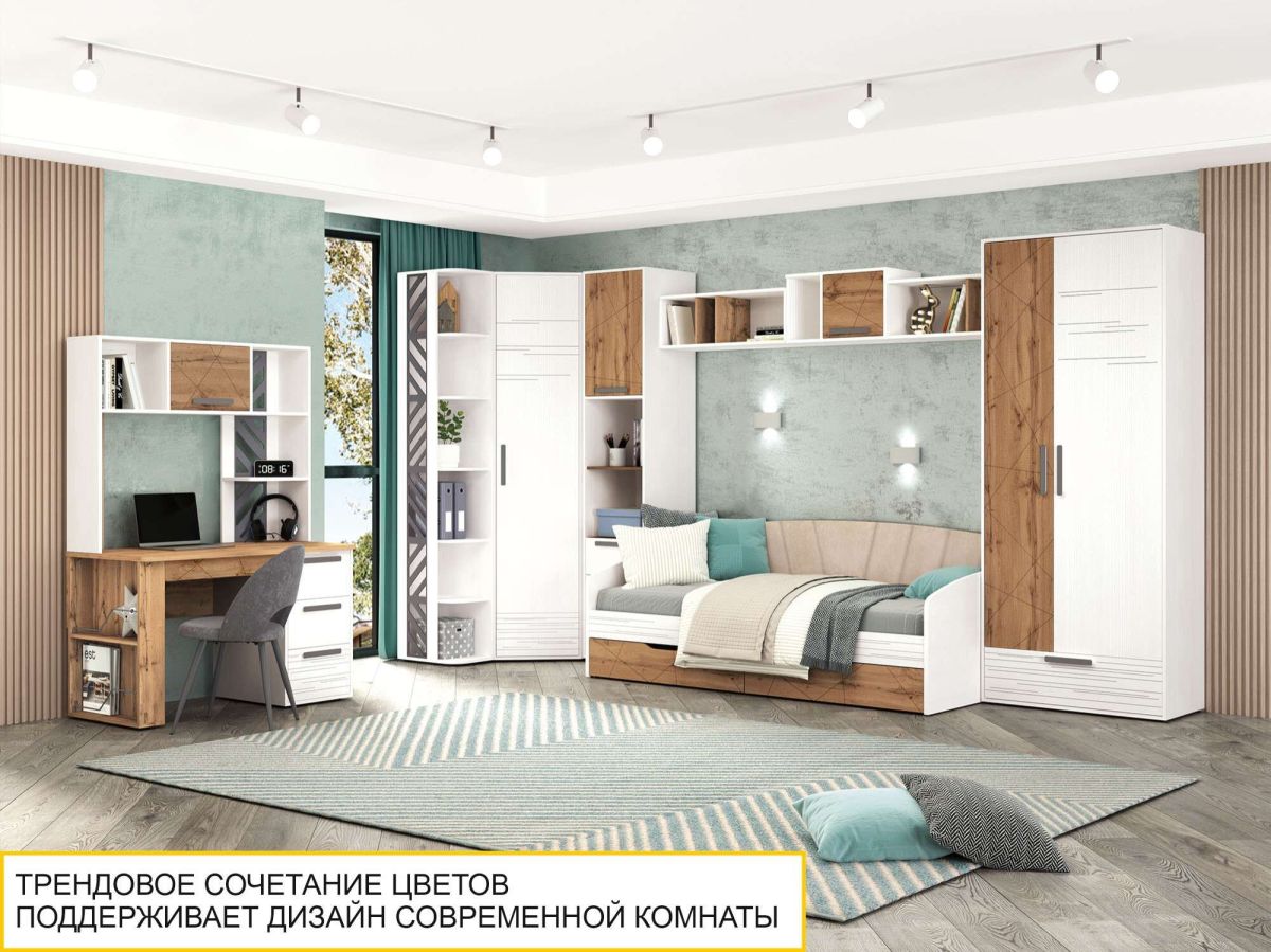 Надстройка «Аляска 503.23» является частью модульной программы «Аляска 503». Коллекция подростковой «Аляска 503» - это современное и функциональное пространство для жизни и учебы. Сочетание белоснежных фасадов с теплым оттенком натурального дерева создает стильный образ коллекции, а универсальный дизайн отлично подойдет как юношам и девушкам, так и детям дошкольного возраста.