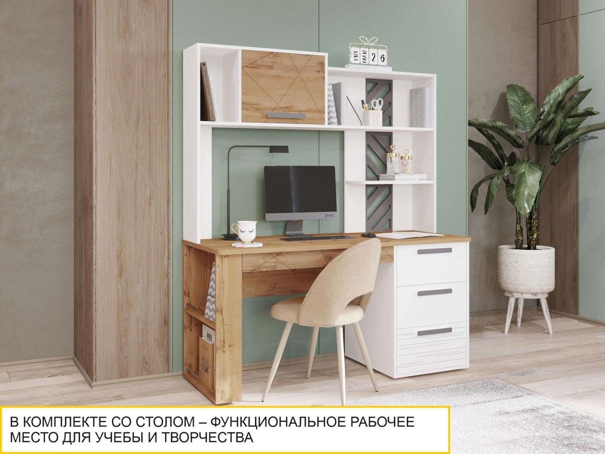 Надстройка идеально подходит к компьютерному столу серии, расширяет его функциональность за счет вместительных полок.