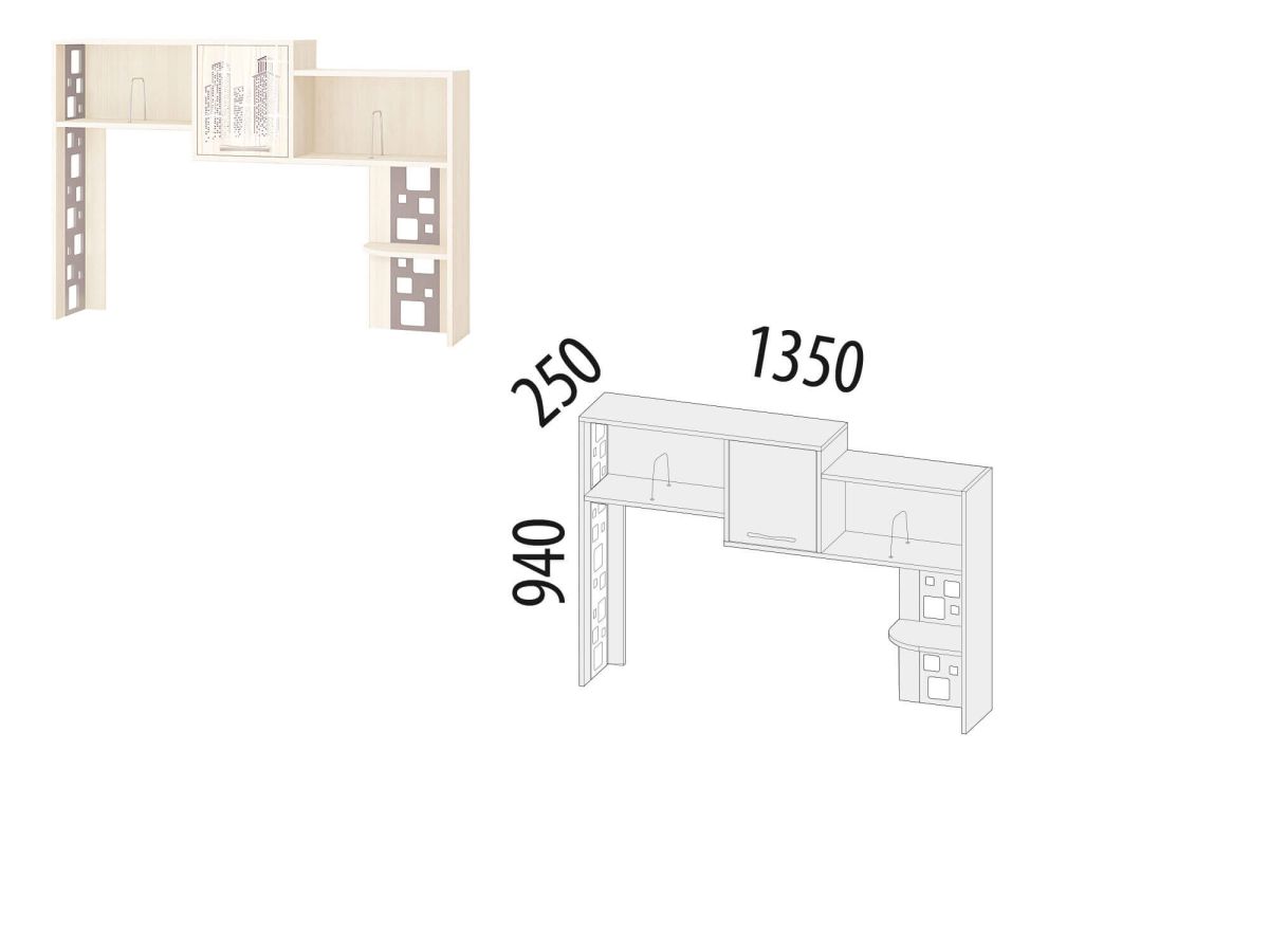 В средней части надстройки расположена полка с распашной дверцей.