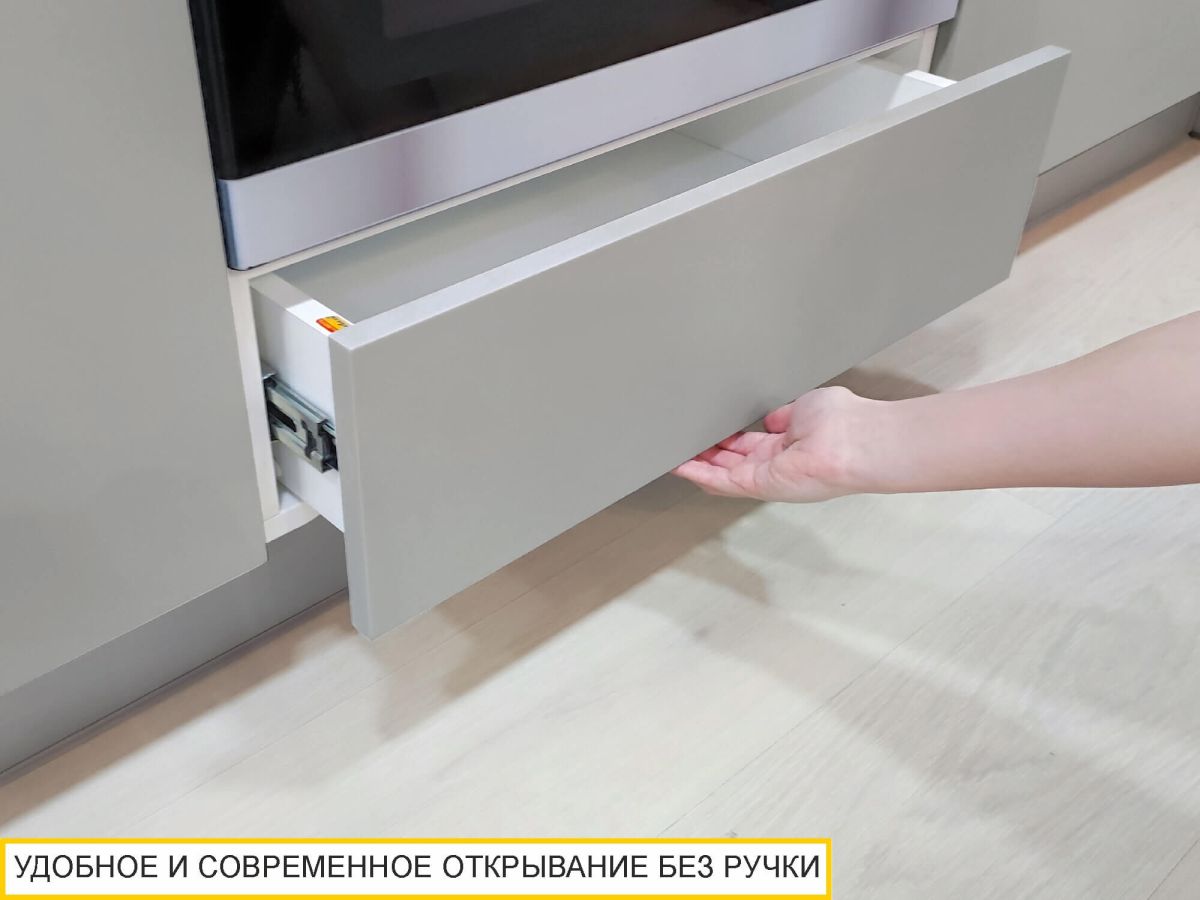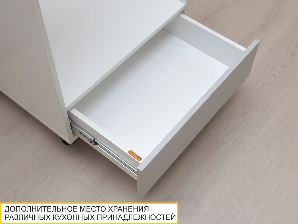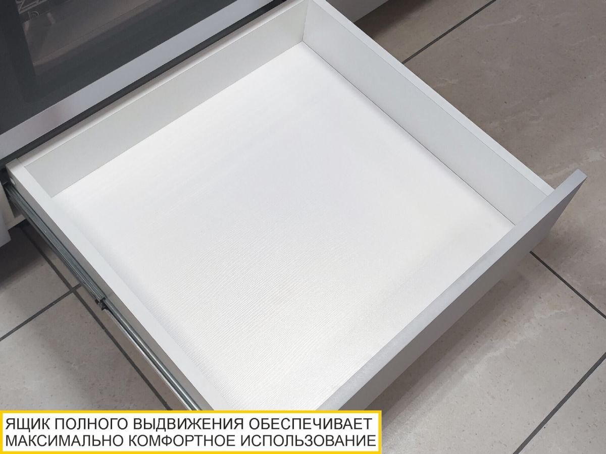 - В напольном шкафу под встраиваемую технику предусмотрен ящик, который является дополнительным местом для хранения различных кухонных принадлежностей.