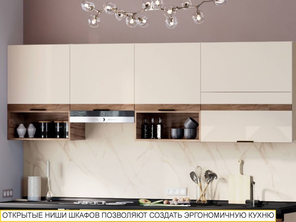 - На кухне можно установить как в сочетании со шкафом над вытяжкой шириной 600 мм, так и отдельно разместить на стену, что создаст стильный акцент и дополнит композицию кухни.