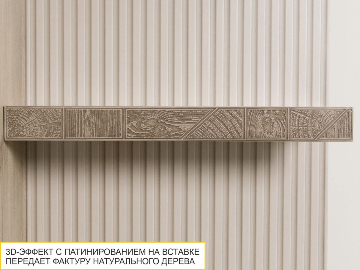 • Панель с полками декорирована фактурными патинированными вставками с имитацией спила натурального дерева. Декор не стирается и не тускнеет со временем.
