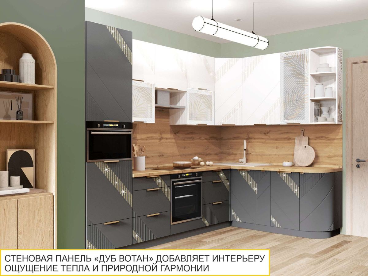 Стеновая панель для кухни «Дуб Вотан» привносит в интерьер природную красоту и теплоту натурального дерева. Рисунок имитирует текстуру дуба с его характерными древесными узорами, добавляет ощущение тепла и природной гармонии. Панель легко сочетается с различными стилями оформления — от классического до современного. Матовая поверхность стеновой панели придаёт интерьеру стильную сдержанность и элегантность. Материал не бликует, что особенно важно в ярко освещённых помещениях. Матовая текстура приятна на ощупь и добавляет глубину дизайну.